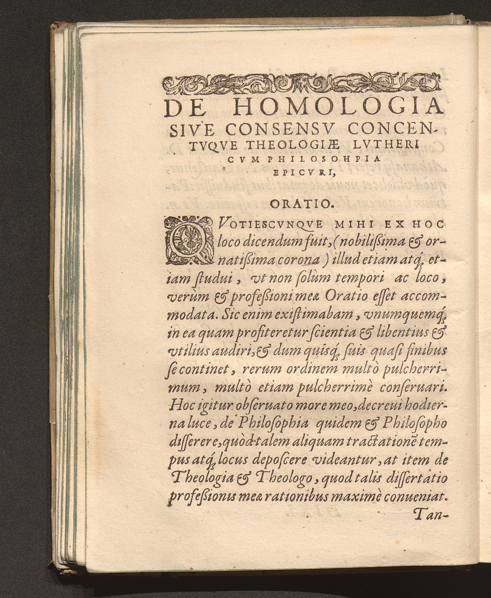 ORATIONES DVÆ,|| VNA,|| DE FIDE AC || RELIGIONE MA-||GNI ILLIVS ATHANASII A-||LEXANDRINI, IVRECONSVL-||ti & Theologi eximij,|| ALTERA,|| DE HOMOLOGIA SIVE CON-||SENSV CONCENTVQVE THEOLO-||giæ Lutheri cum Philosophia Epicuri:|| : AMBÆ INGOLSTADII, IN PVBLICIS || ET SOLENNIBVS PROMOTIONIBVS || HABITAE || / AB || ALBERTO HVNGERO,|| eiusdem INGOLSTADIENSIS Academiæ Professore || Theologo & Procancellario.||