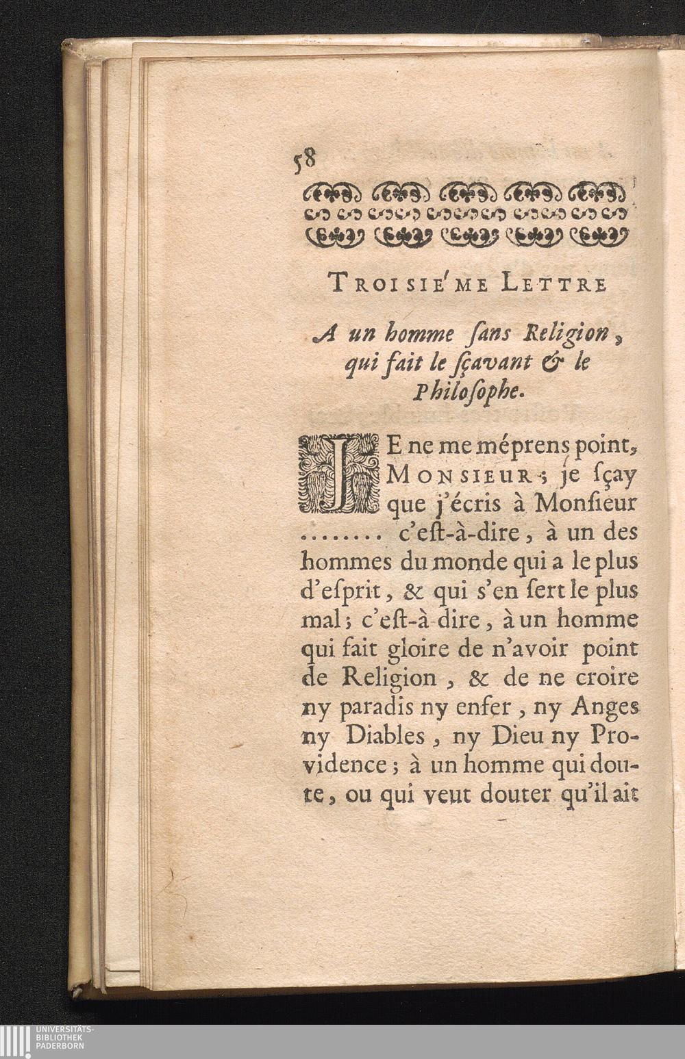 Troisie'me Lettre A un homme sans Religion, qui fait le sçavant & le Philosophe.
