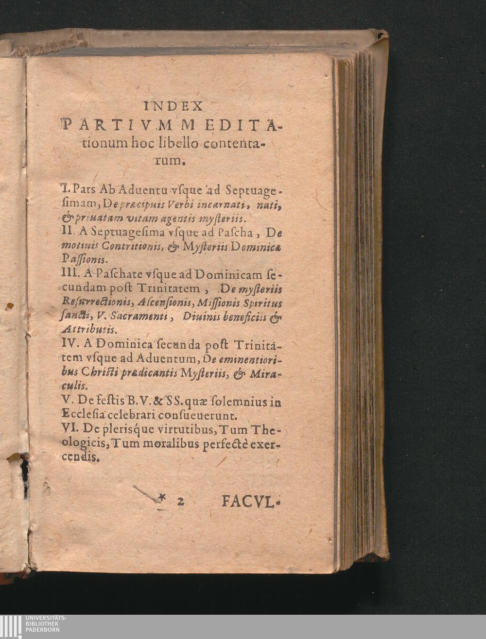 R. P. Christiani Mayer E Societate Iesv, Diarivm Meditationvm, De Præcipvis Vitæ Christi mysteriis : Diuinis beneficiis, attributis: B Virginis, & Sanctorum festis: & Virtutibus, In singulos Anni dies Ecclesiastico temporè congruenter digestarum, Omnibvs Mentalis Orationis, & Christianæ perfectionis studiosis peraccommodum. in sex diuisum partes, quarum indicem sequens pagella exhibet