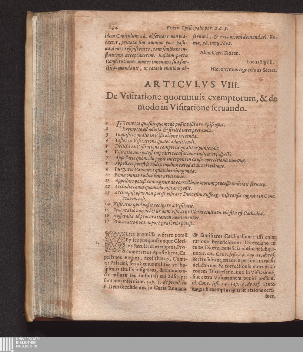 Praxis Episcopalis : Ea Qvæ Officivm Et Potestatem Episcopi Concernvnt Continens ; In Qva Varia Svmmorvm Pontificum, & Sacrarum S.R.E. Congregationum, praesertim post Conc. Trid. hucusque emanata Decreta, ad vsum Fori Ecclesiastici omnino necessaria ex probatis exemplaribus referuntur / Pavli Piasecii, I.V.D. Proth. Apost. Archidiac. Varsavien. studio & opera nuper edita, & nunc recens iussu Sacrarum Congreg. sc. Interpretum S. Conc. Trid. negotijs Episcoporum & Regularium Praefect. & Indicijs, partim ab alijs, partim ab ipso Auctore recognita, ornata, locupletißimè aucta, & collatis Decretis omnibus, ad sua originalia exempla, veritati restituta