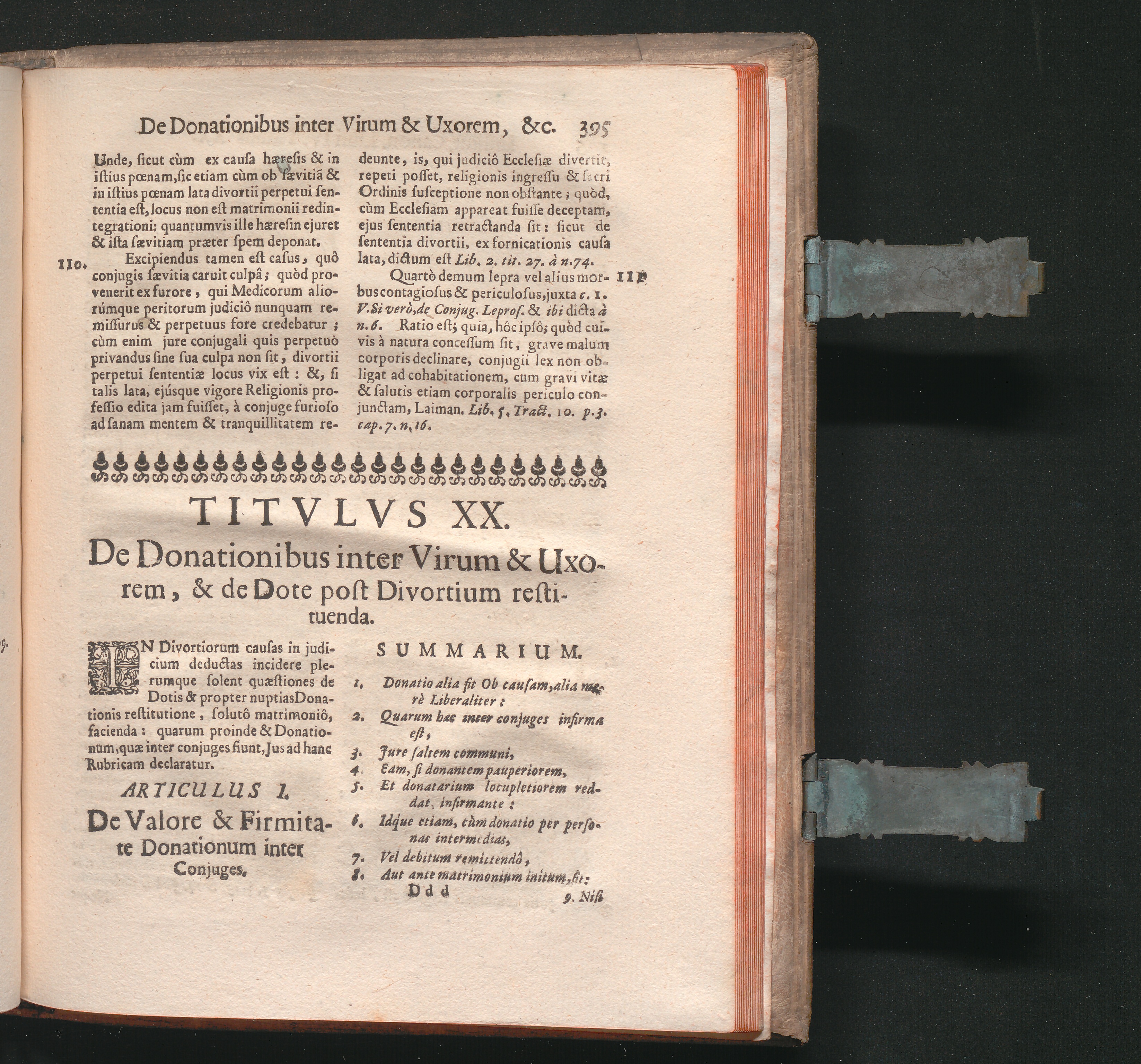 Titvlvs XX. De Donationibus inter Virum & Uxorem, & de Dote post Divortium resti[...]
