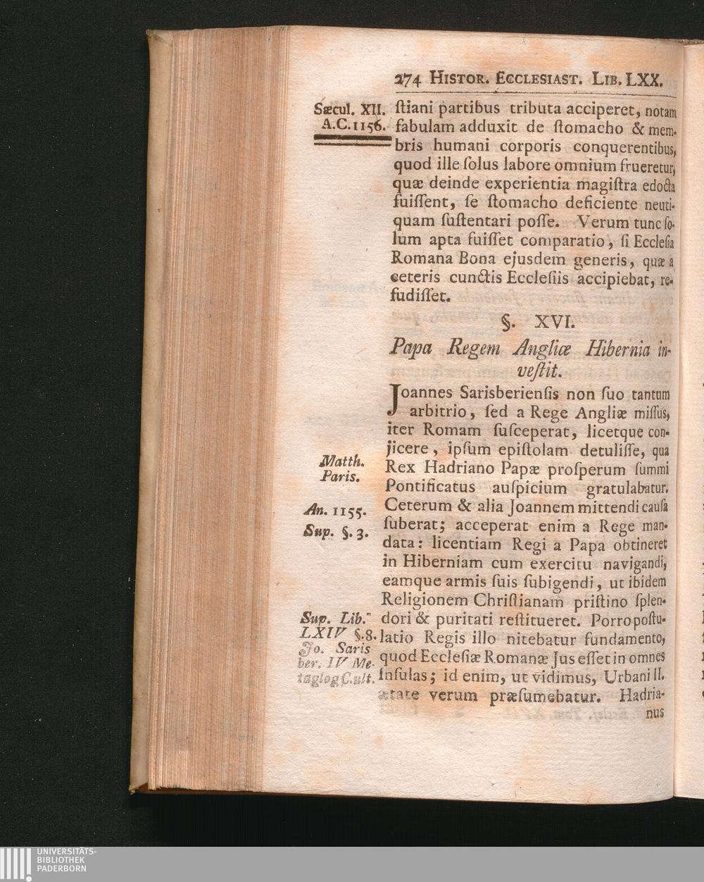 §. 16. Papa Regem Angliæ Hibermia investit.