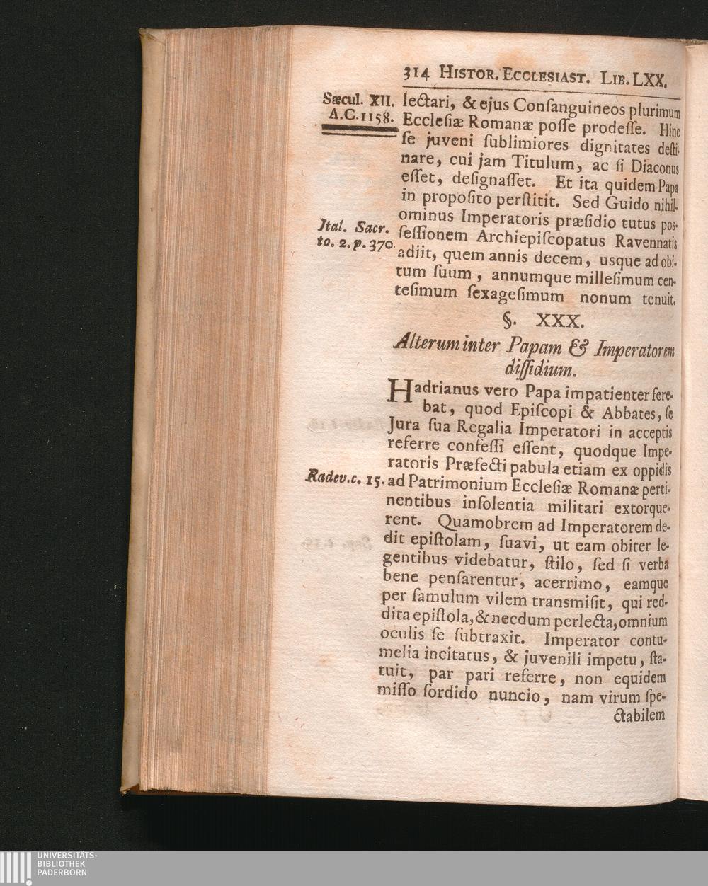 §. 30. Alterum inter Papam & Imperatorem dissidium.