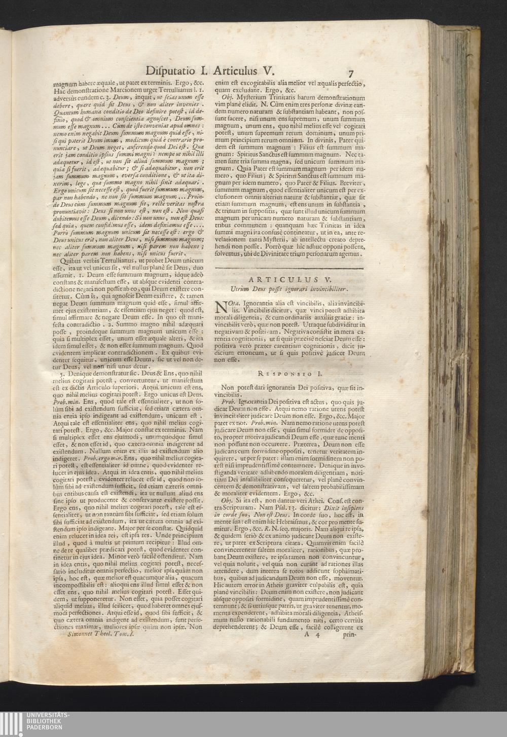 1 (1731) Institutiones Theologicae Ad Usum Seminariorum / Auctore Rev. Patre Edmundo Simonnet Societatis Jesu Presbytero, Sacræ Theologiæ Doctore & Exprofessore, Universitatis Mussipontanæ Cancellario. Tomus Primus.