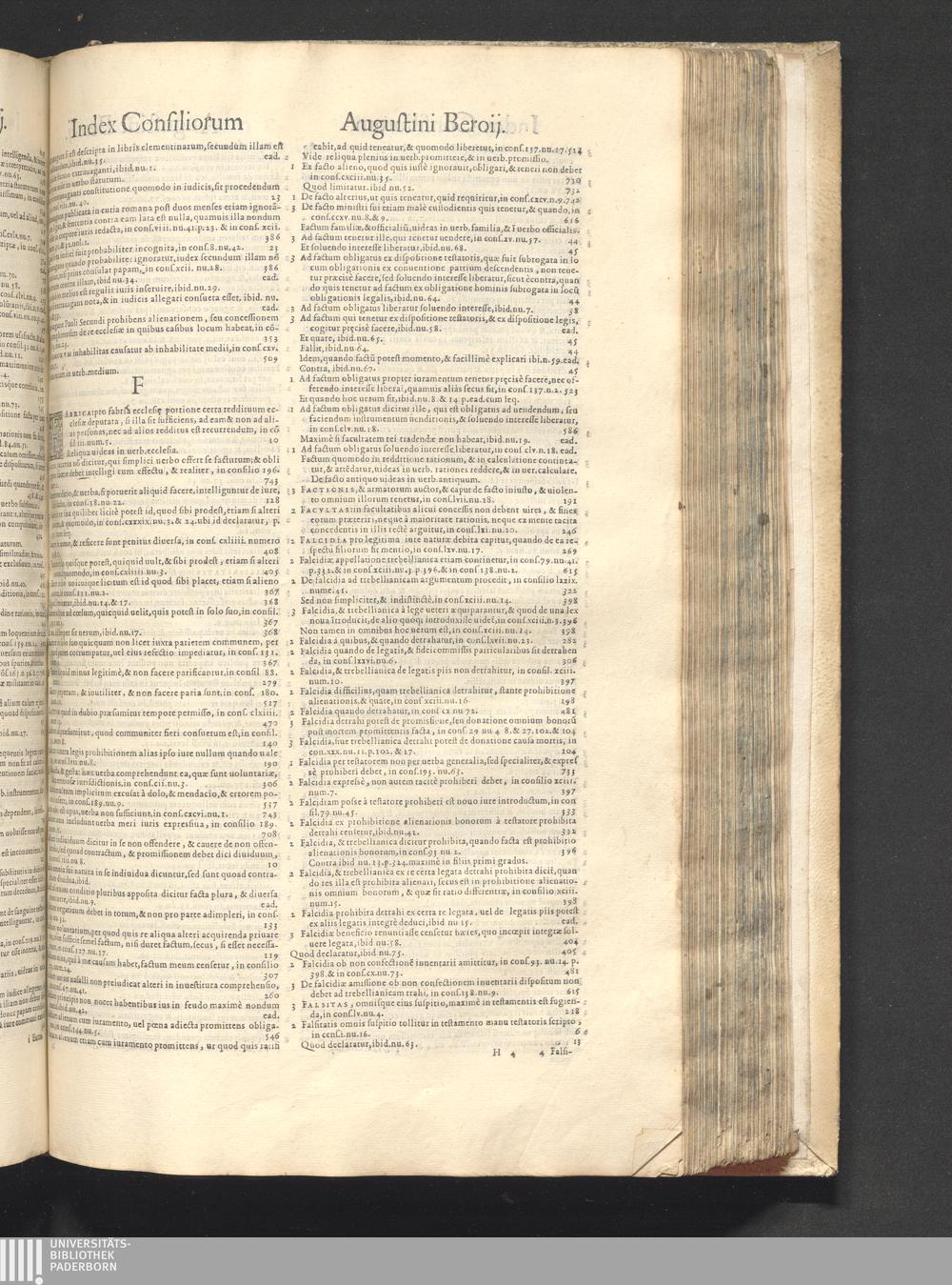 Index (1577) Index Rervm Omnivm, Locorvmq[ue] Insignivm Qvae In Tribvs Dinstictis voluminibus Consiliorvm Avgvstini Beroii Continentvr