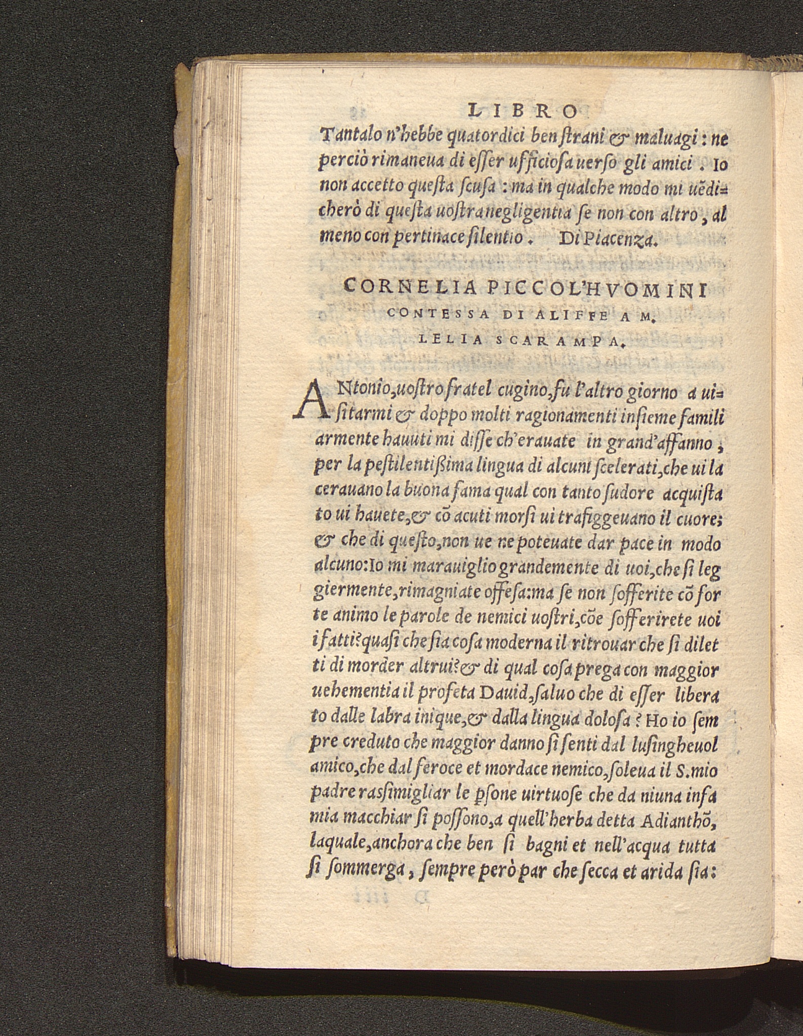 Cornelia Piccol'Hvomini Contessa Di Aliffe A M. Lelia Scarampa.