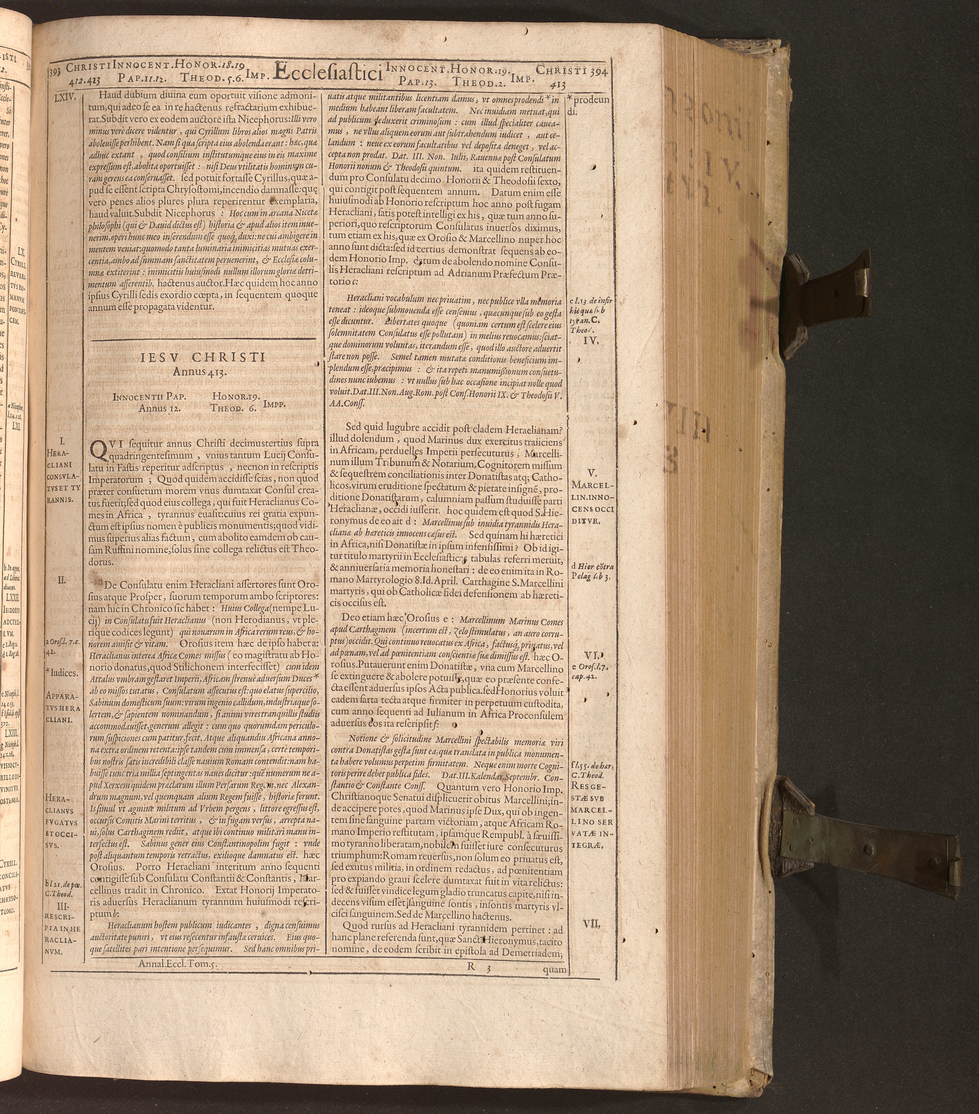 Tomvs Qvintvs (1624) Incipiens ab exordio Imperij Arcadij & Honorij Augustorum, Anno Domini CCC. XCV. perueniens vsque ad CCCC. XL. continet annos XLV. ita dispositus, vt commodè sextus tomus à S. Leone Magno Pontifice Maximo inchoetur
