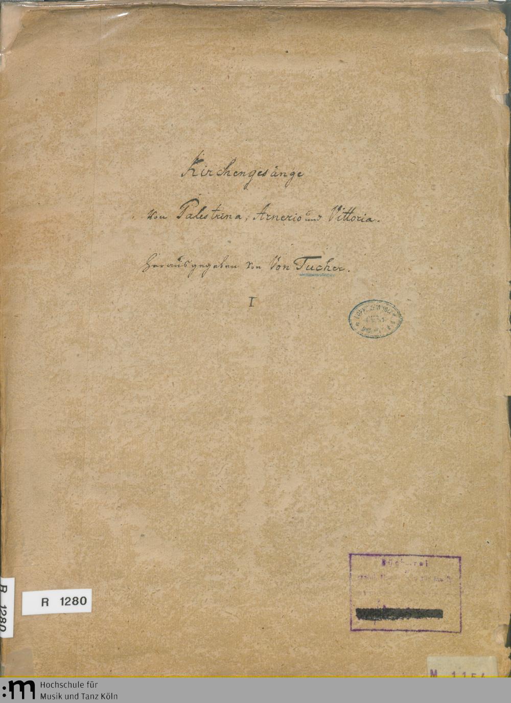 Kirchengesänge der berühmtesten älteren italiänischen Meister / Gesammelt und dem Herrn Ludwig von Beethoven gewidmet von Gottlieb Freyherr von Tucher. 1ste Lieferung.