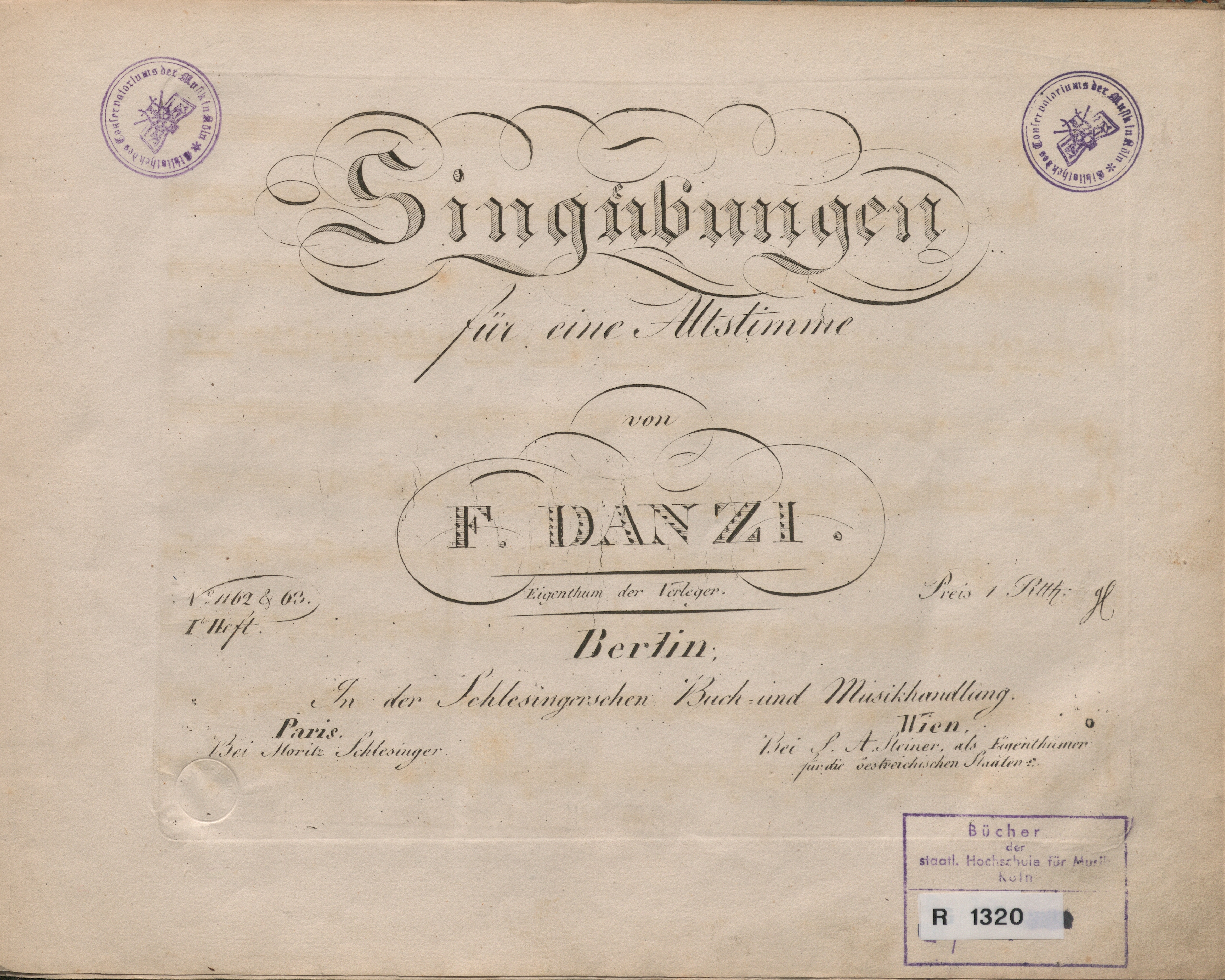1tes Heft (1822) Singübungen für eine Altstimme : [op. 63] / von F. Danzi