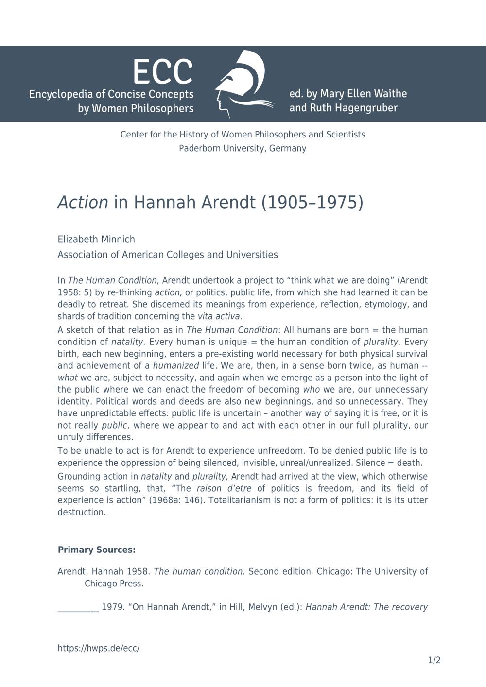 Action in Hannah Arendt (1905-1975) / Elizabeth Minnich