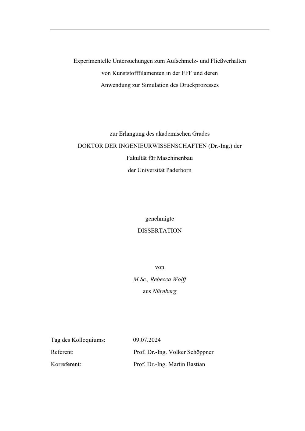 Experimentelle Untersuchungen zum Aufschmelz- und Fließverhalten von Kunststofffilamenten in der FFF und deren Anwendung zur Simulation des Druckprozesses