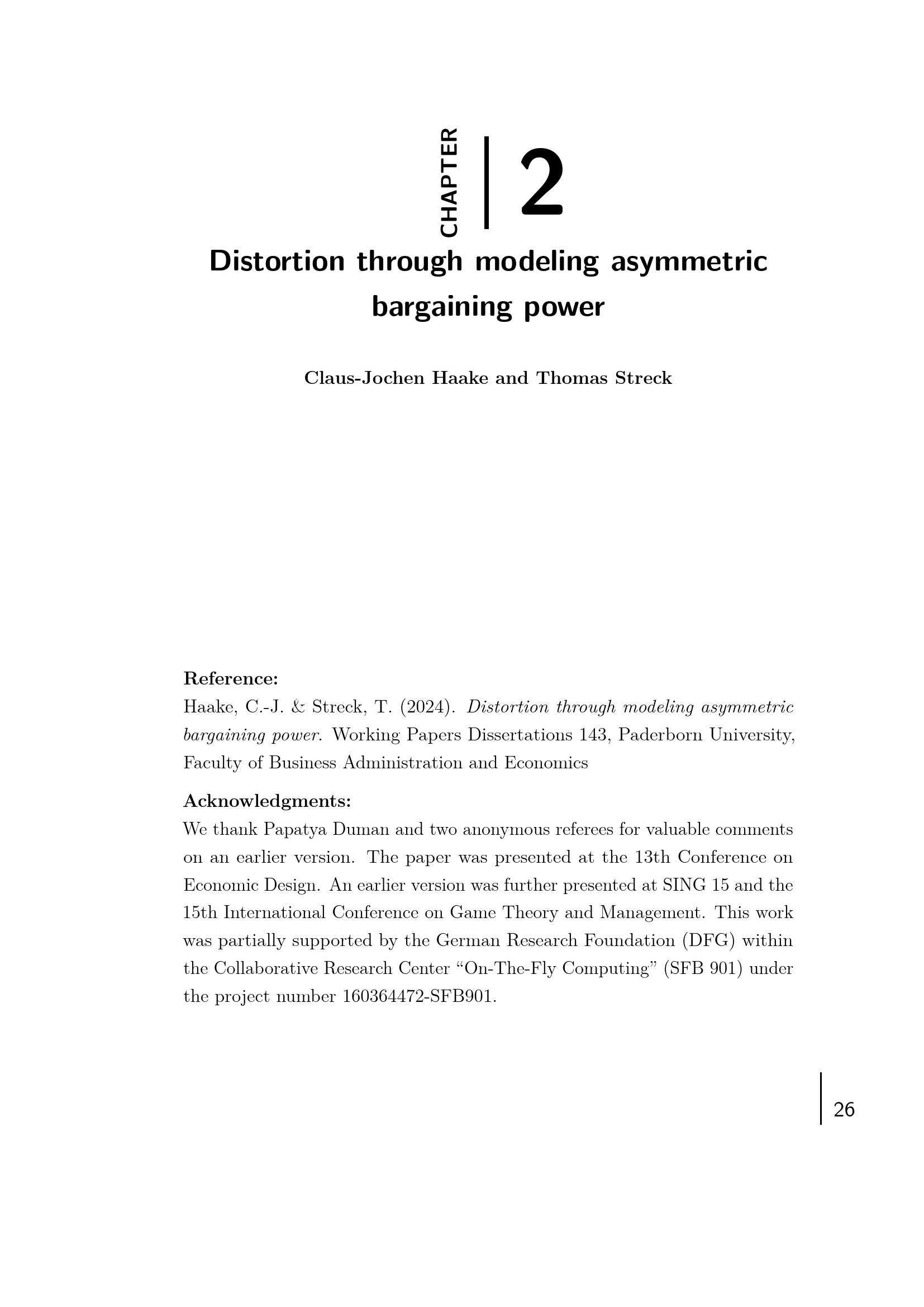 Asymmetry, Contestedness and Distortion in Two-Person Bargaining / von Thomas Streck ; Erstgutachter Prof. Dr. Claus-Jochen Haake, Zweitgutachter Prof. Dr. Burkhard Hehenkamp