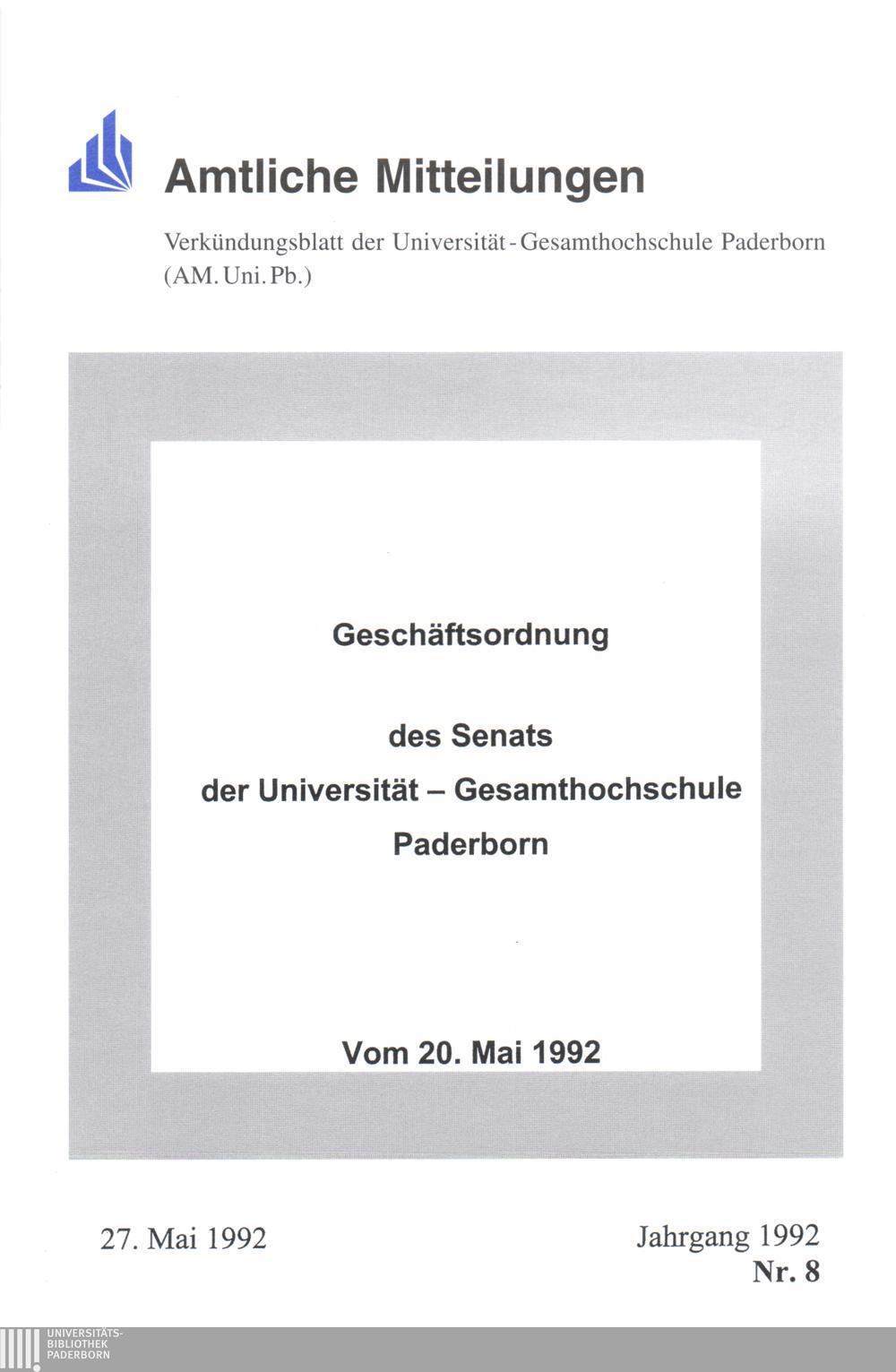 Geschäftsordnung des Senats der Universität - Gesamthochschule - Paderborn : vom 20. Mai 1992