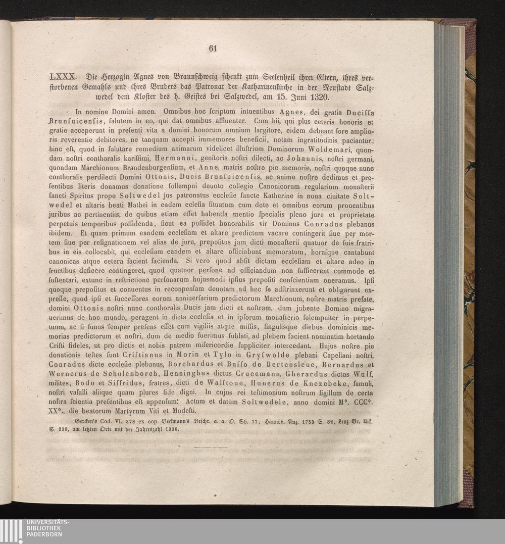 LXXX. Die Herzogin Agnes von Braunschweig schenkt zum Seelenheil ihrer Eltern, ihres[...]