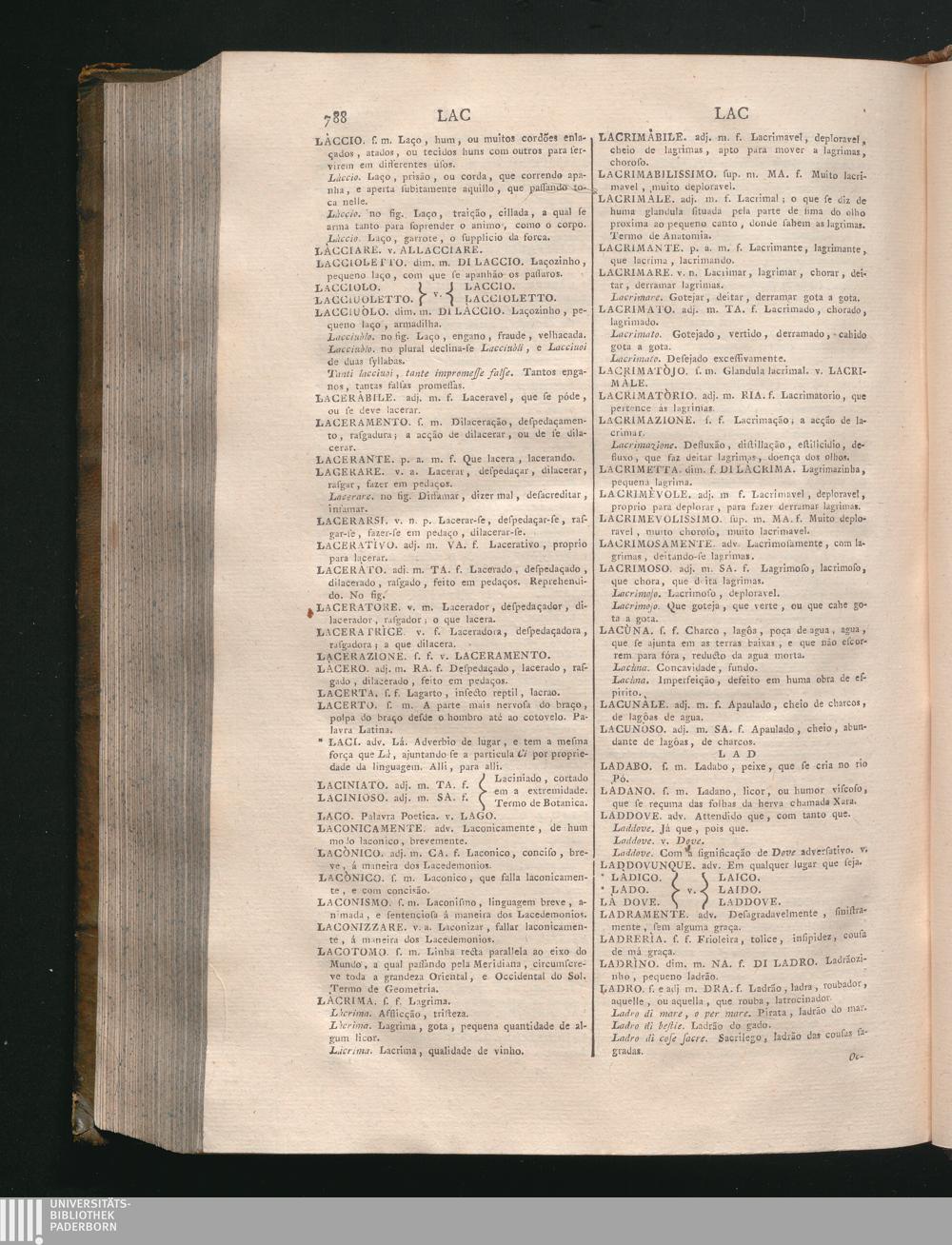 Parte Prima, Tomo Primo (1773) A - L