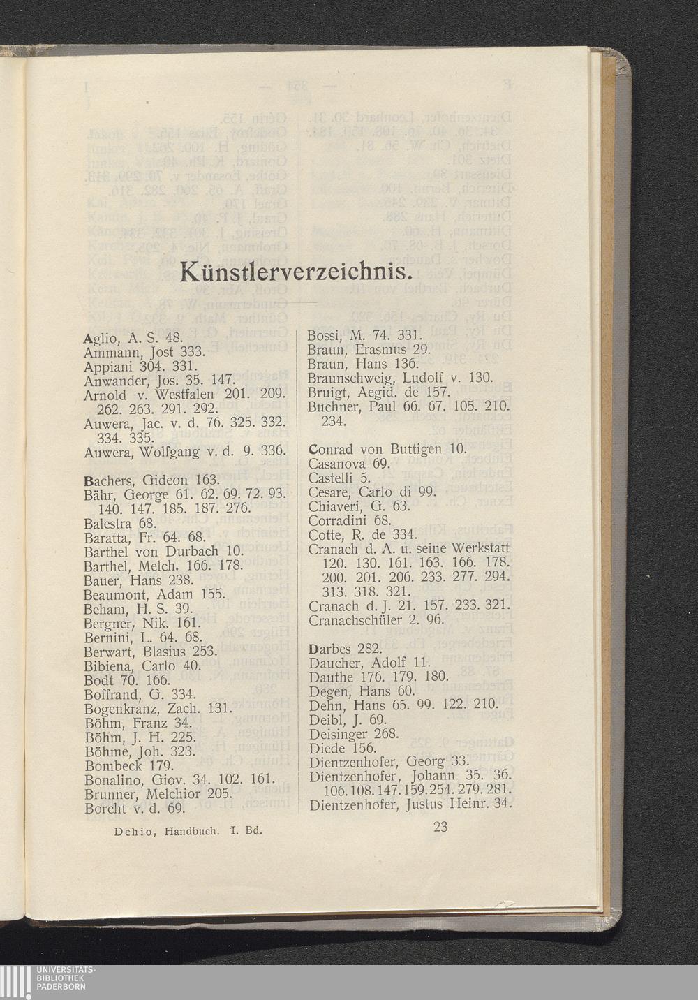 Künstlerverzeichnis.