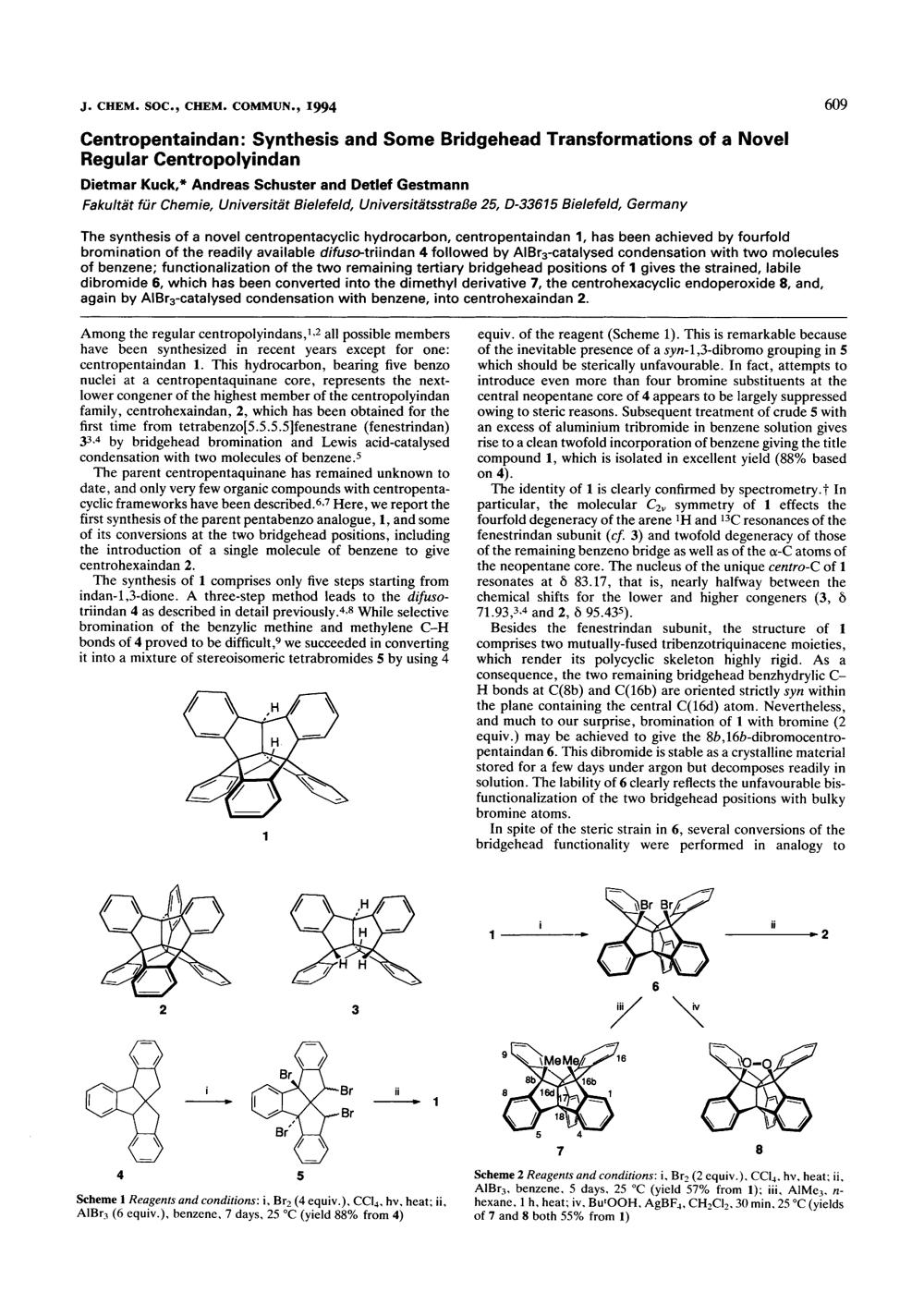 Centropentaindan: synthesis and some bridgehead transformations of a novel regular centropolyindan
