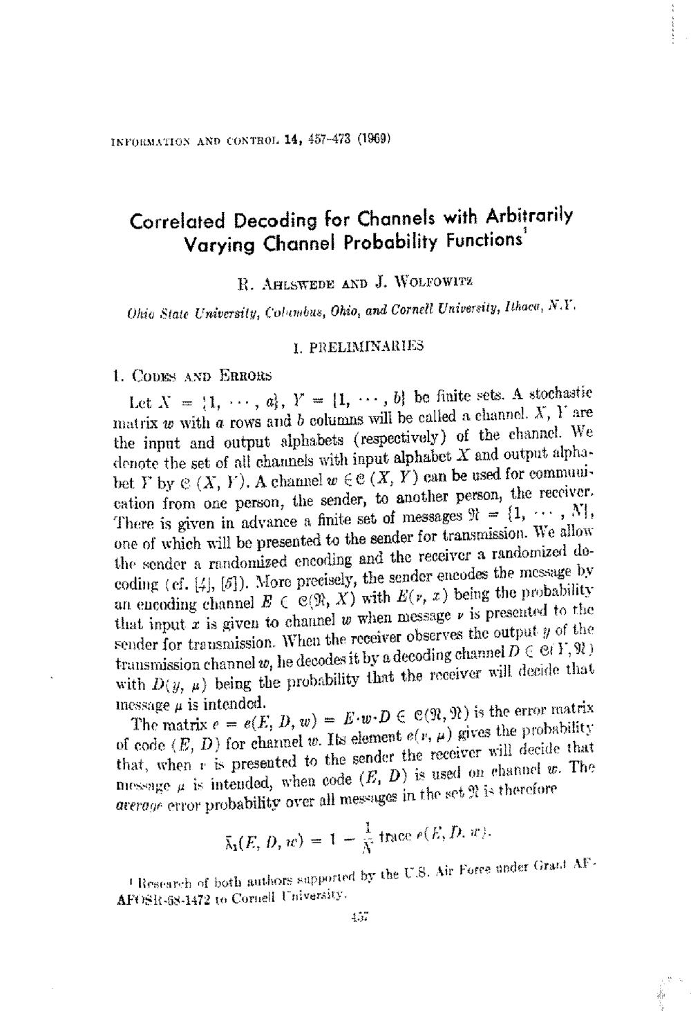 Correlated decoding for channels with arbitrarily varying channel probability fu[...]