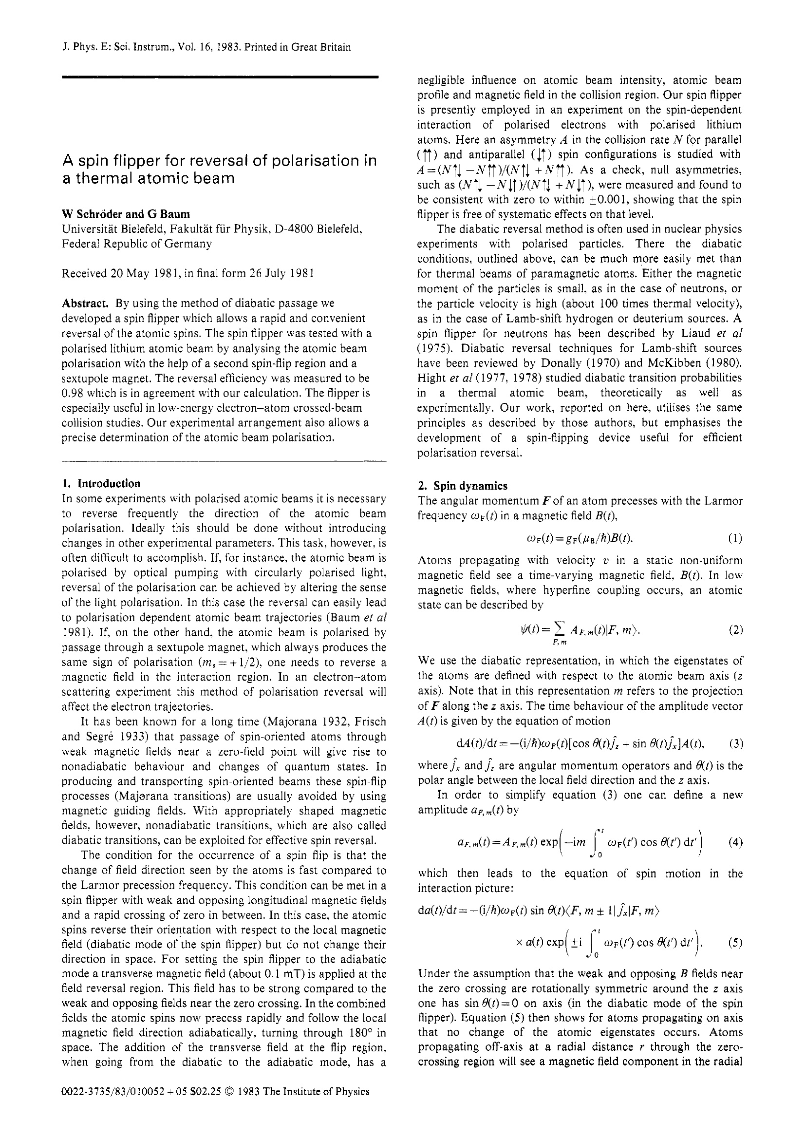 A spin flipper for reversal of polarisation in a thermal atomic beam