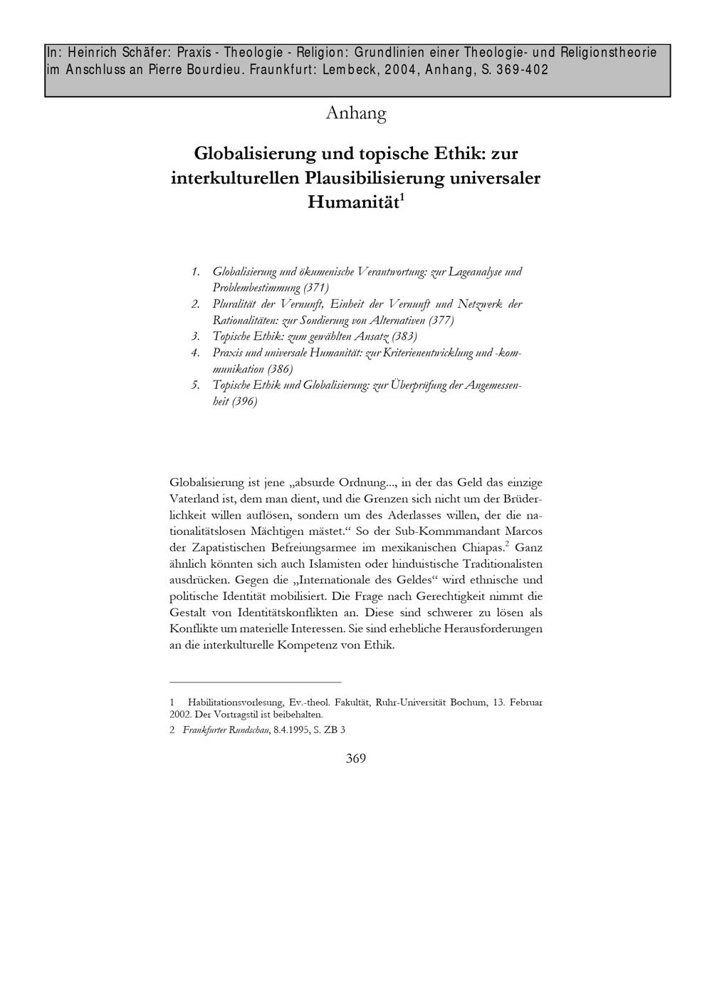 Globalisierung und topische Ethik. Zur interkulturellen Plausibilisierung universaler Humanität
