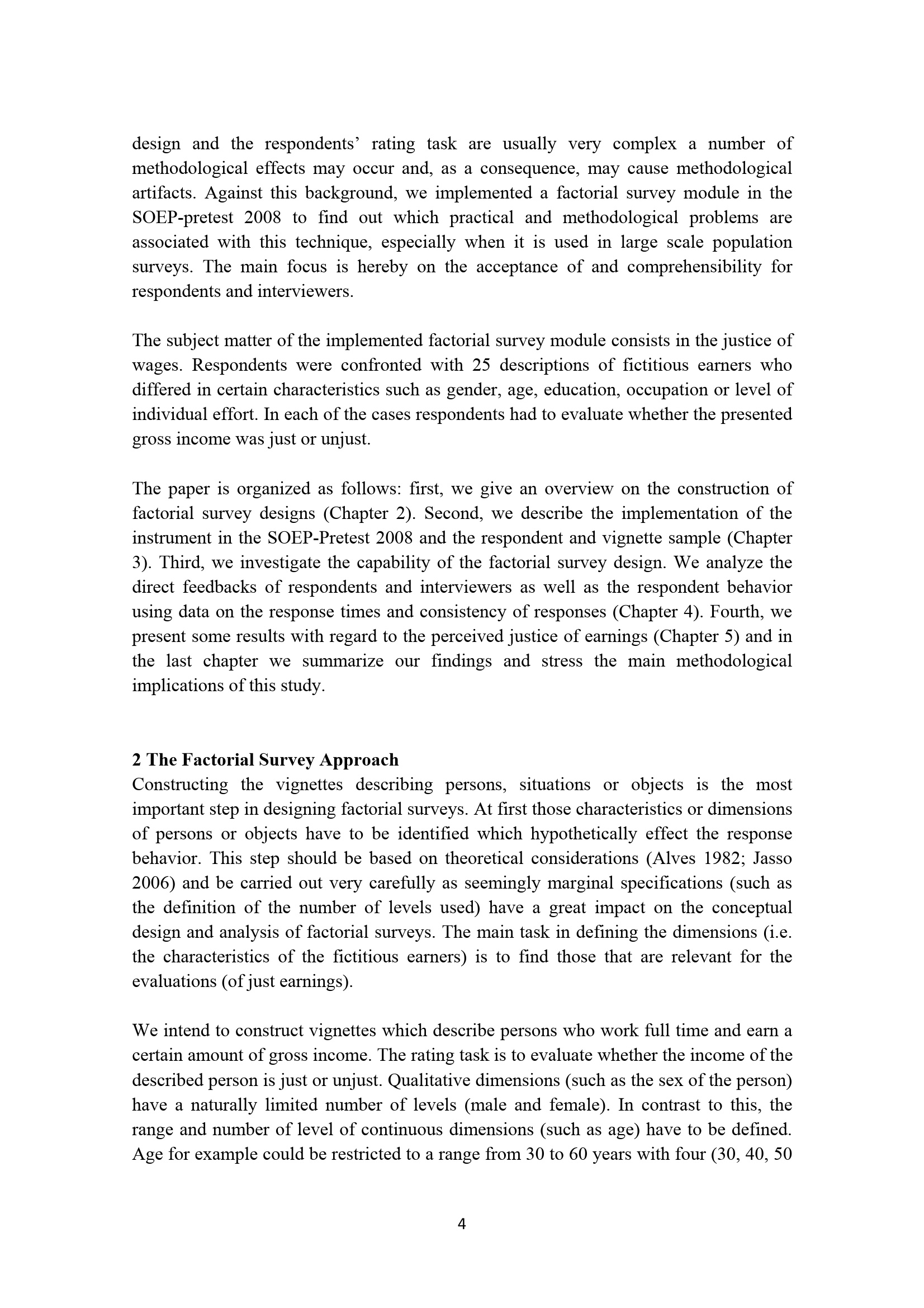 A Factorial Survey on the Justice of Earnings within the SOEP-Pretest 2008