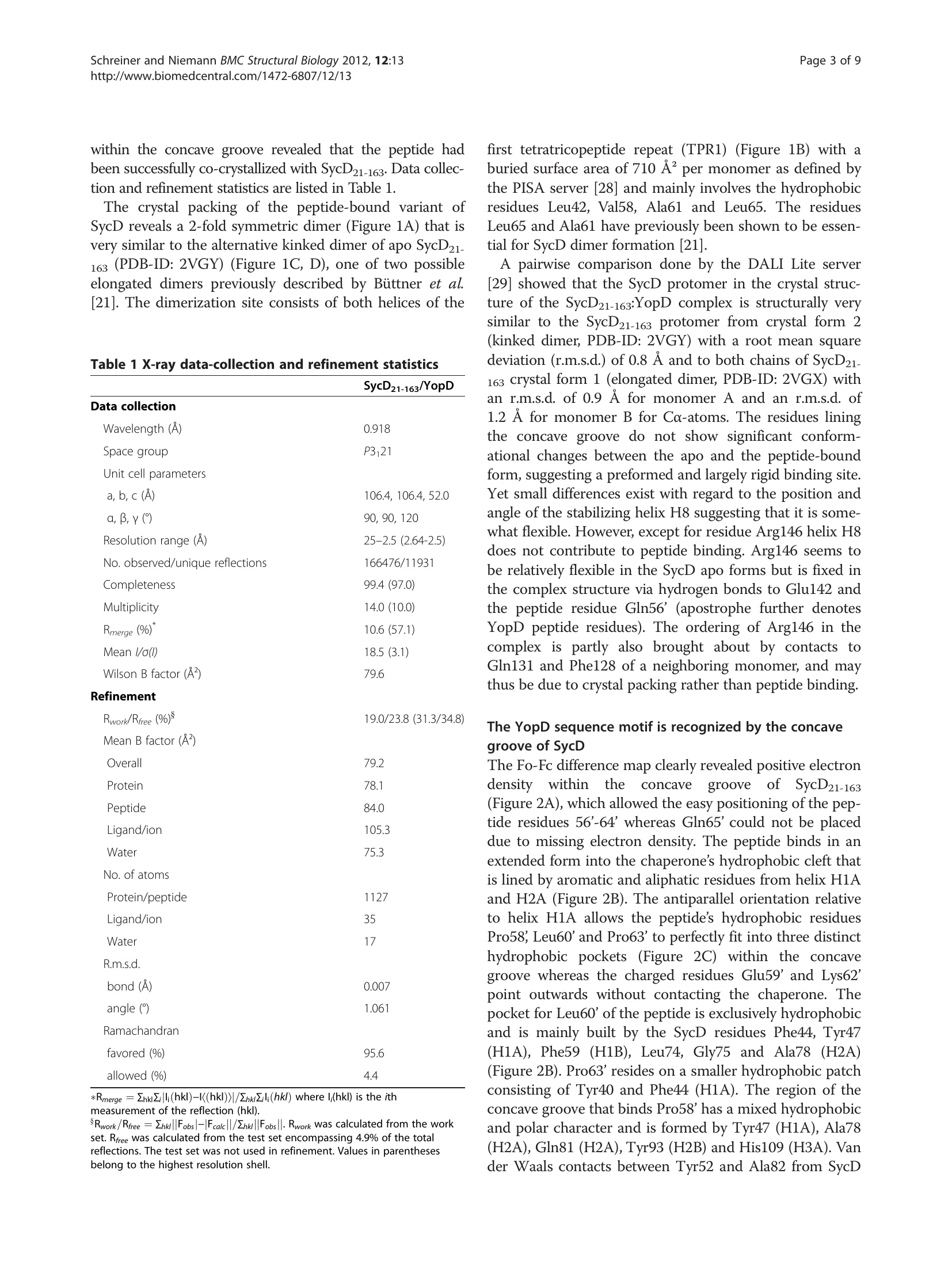The YopD sequence motif is recognized by the concave groove of SycD