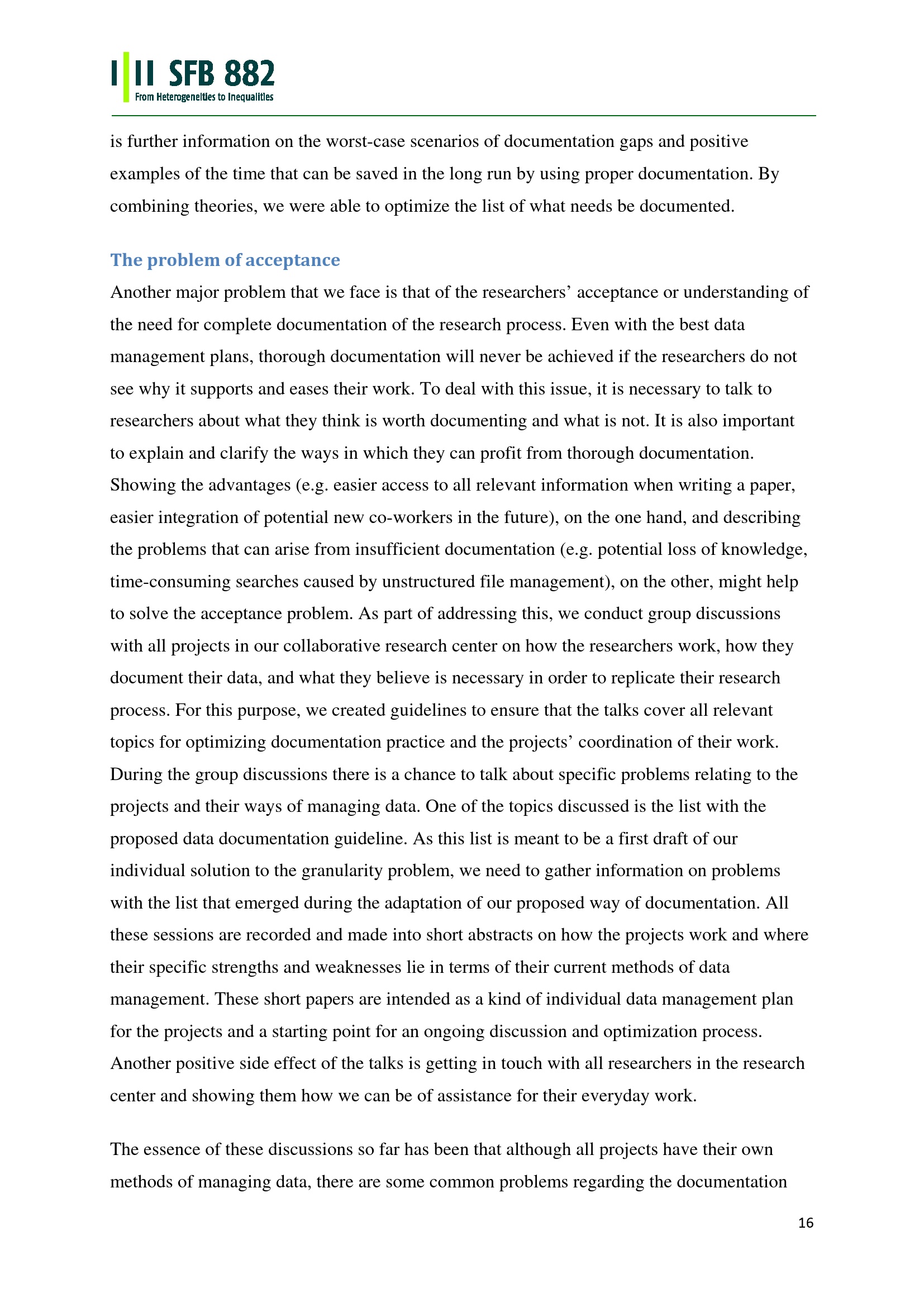 Documentation, Management, and Technical Implementation at SFB 882