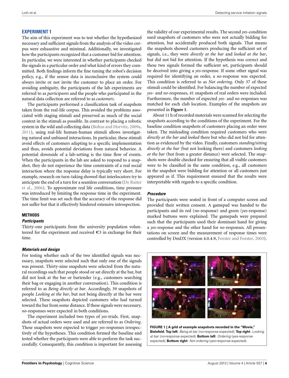 Automatic detection of service initiation signals used in bars