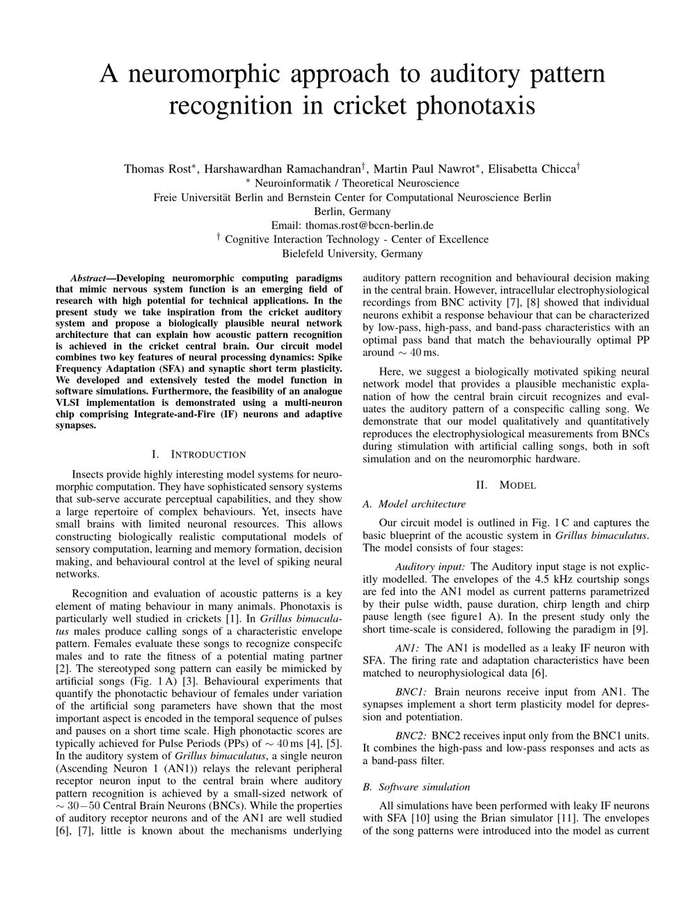 A neuromorphic approach to auditory pattern recognition in cricket phonotaxis