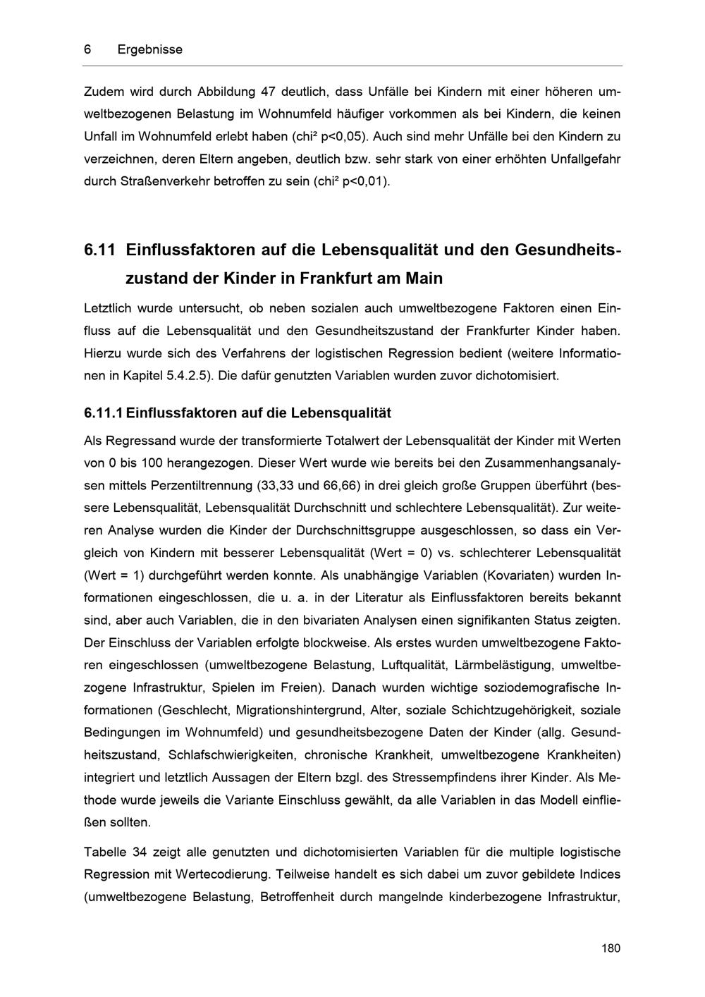 6.11 Einflussfaktoren auf die Lebensqualität und den Gesundheitszustand der Kinder[...]