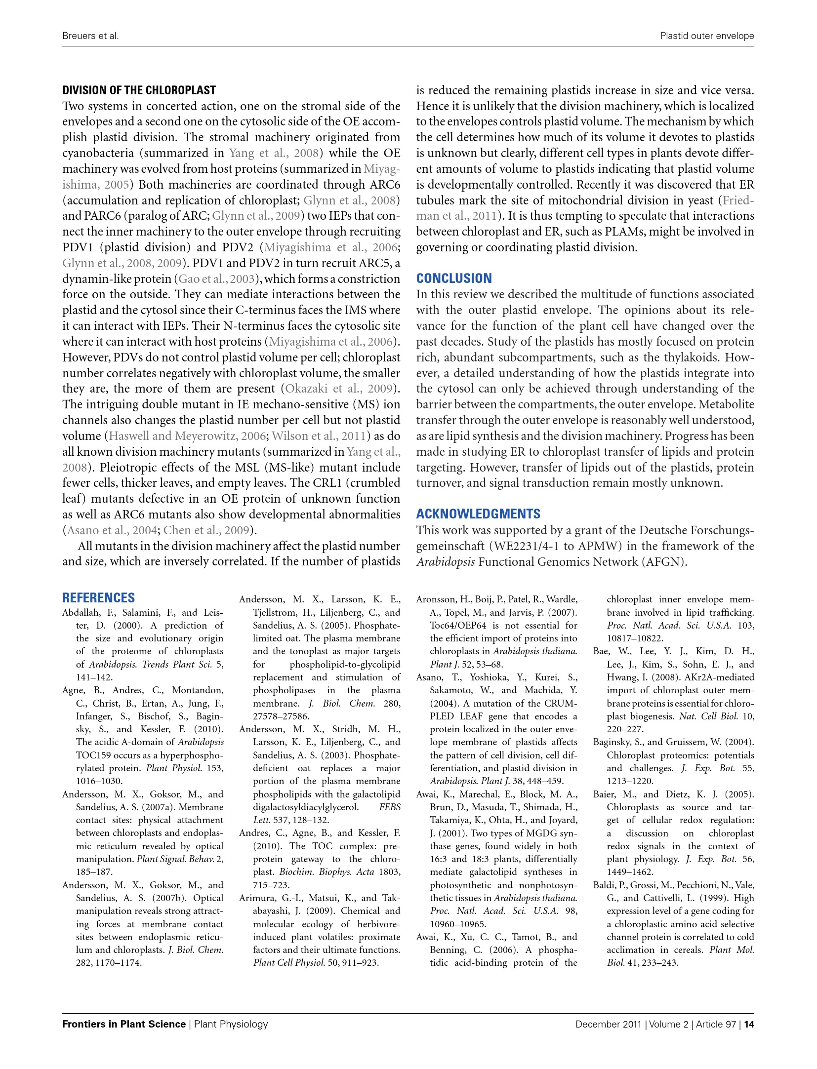 The plastid outer envelope - a highly dynamic interface between plastid and cyto[...]
