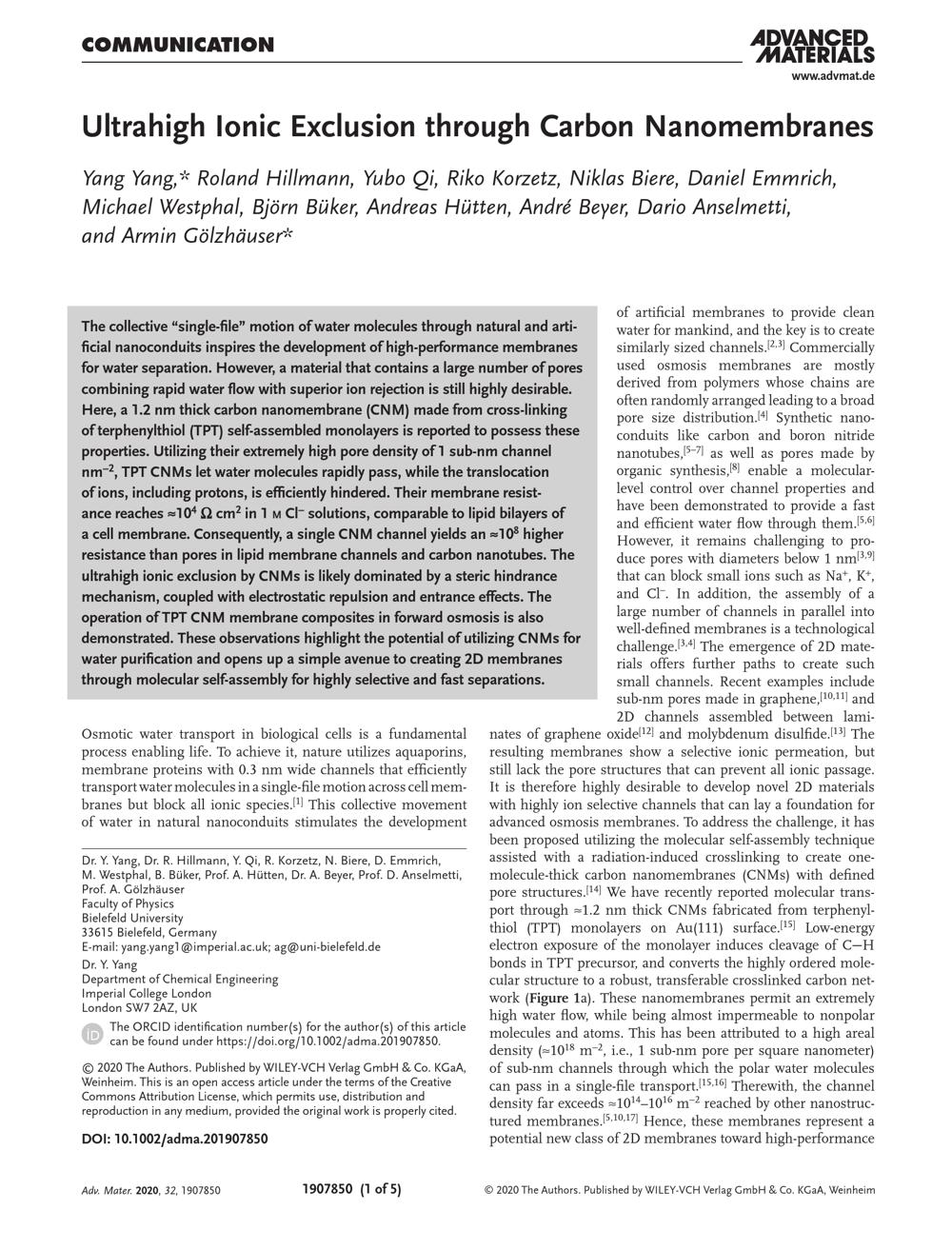Ultrahigh Ionic Exclusion through Carbon Nanomembranes.