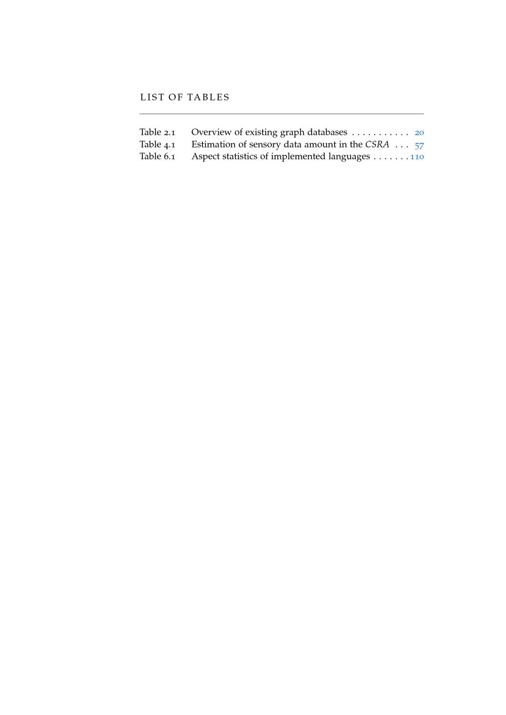 List of tables