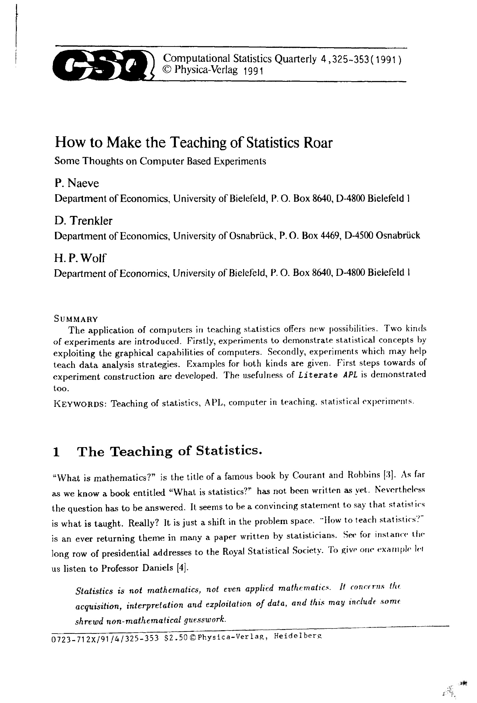 How to make the teaching of statistics roar: some thoughts on computer based exp[...]