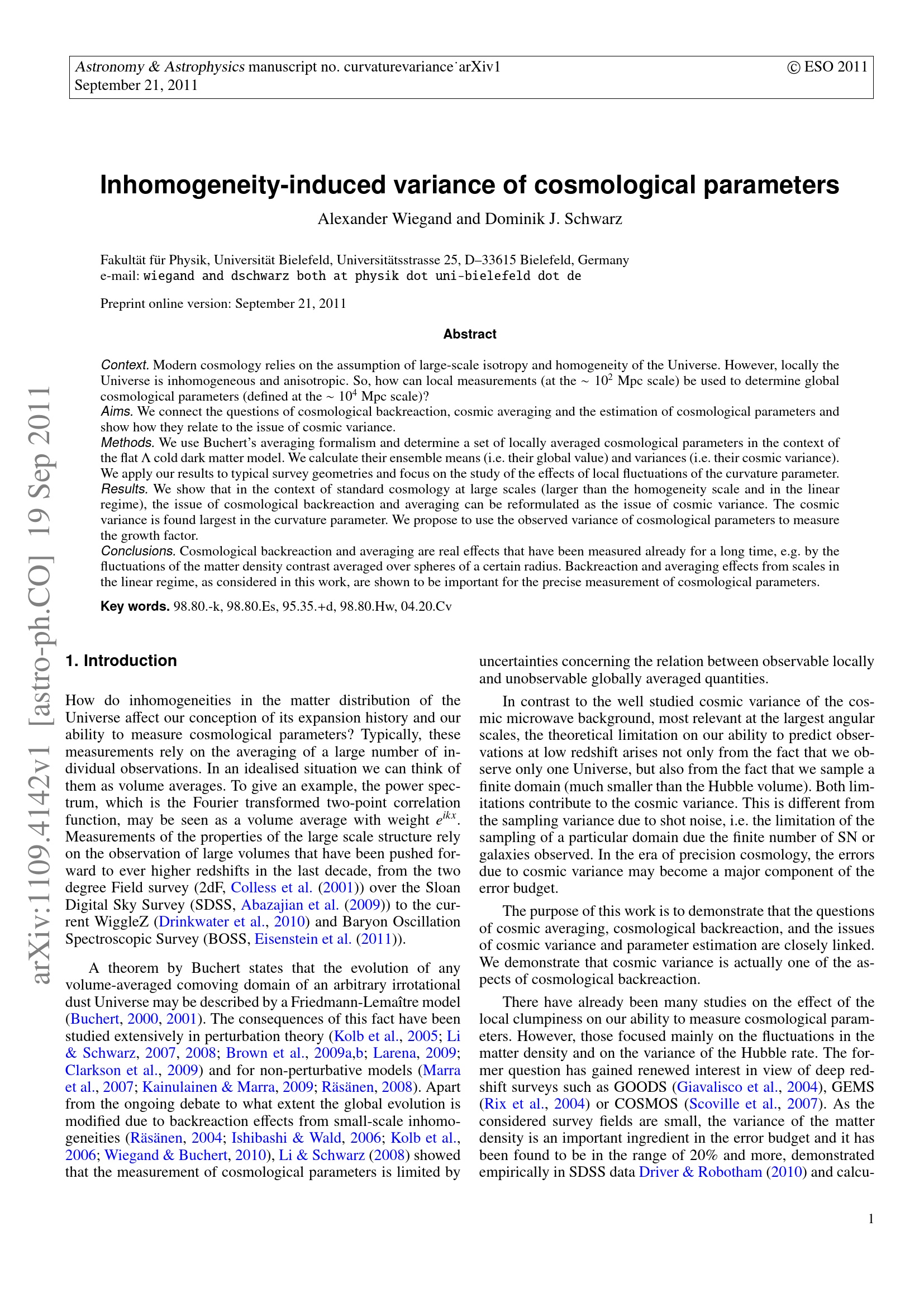 4 Variances of locally averaged cosmological parameters