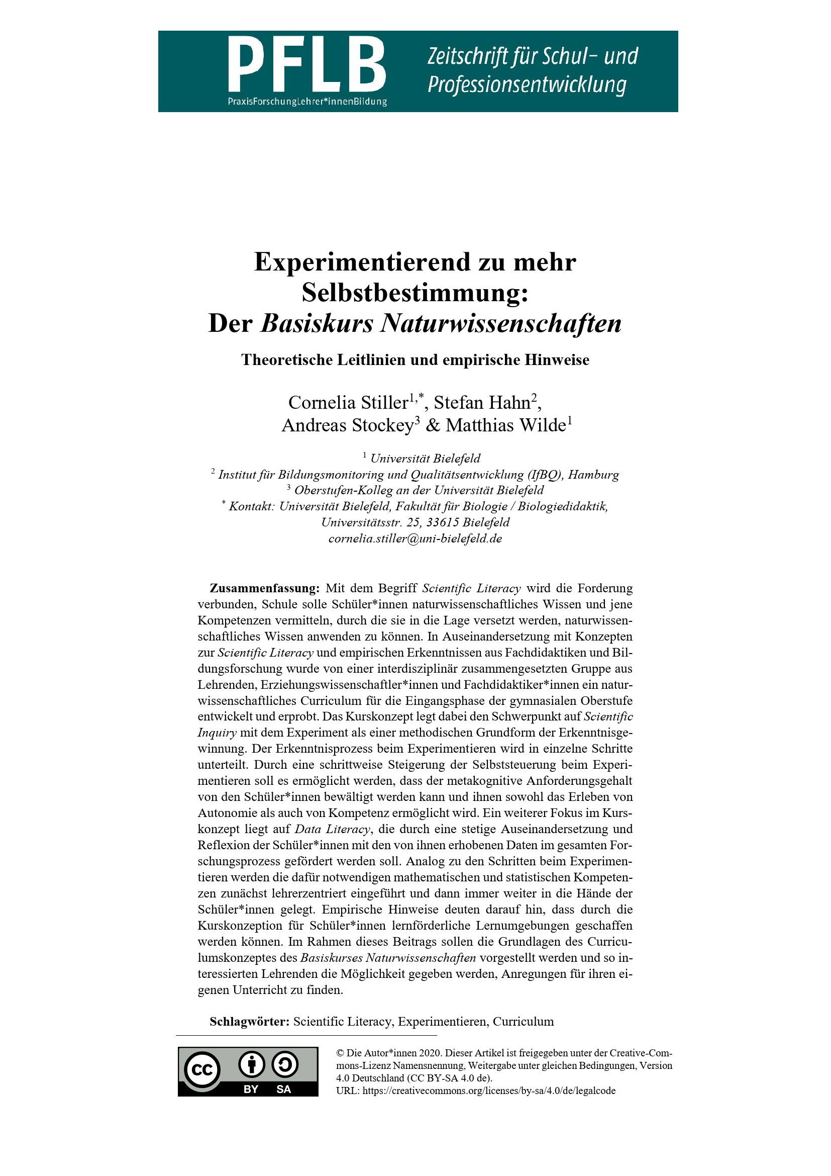 Experimentierend zu mehr Selbstbestimmung: Der Basiskurs Naturwissenschaften – Theoretische Leitlinien und empirische Hinweise