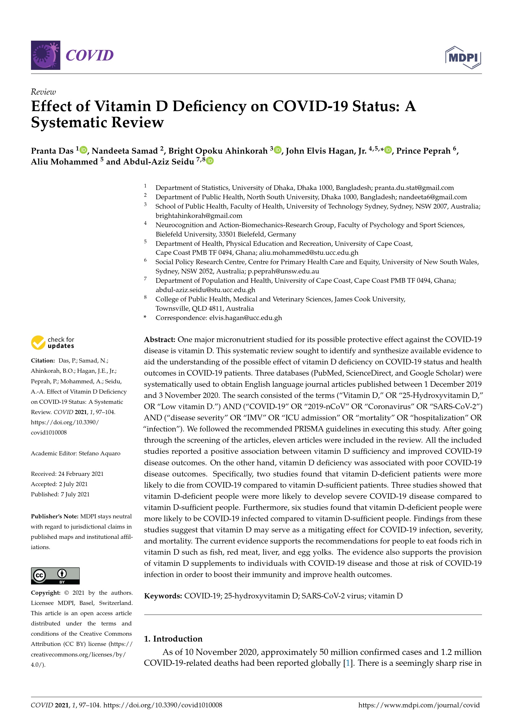 Effect of Vitamin D Deficiency on COVID-19 Status: A Systematic Review