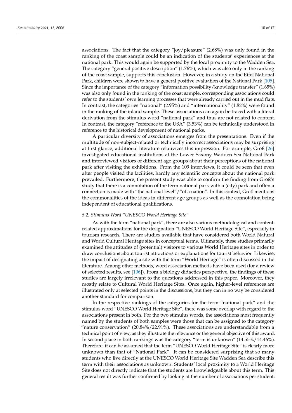 The Wadden Sea as a National Park and UNESCO World Heritage Site: Students’ Word Associations with These Two Conservation Designations