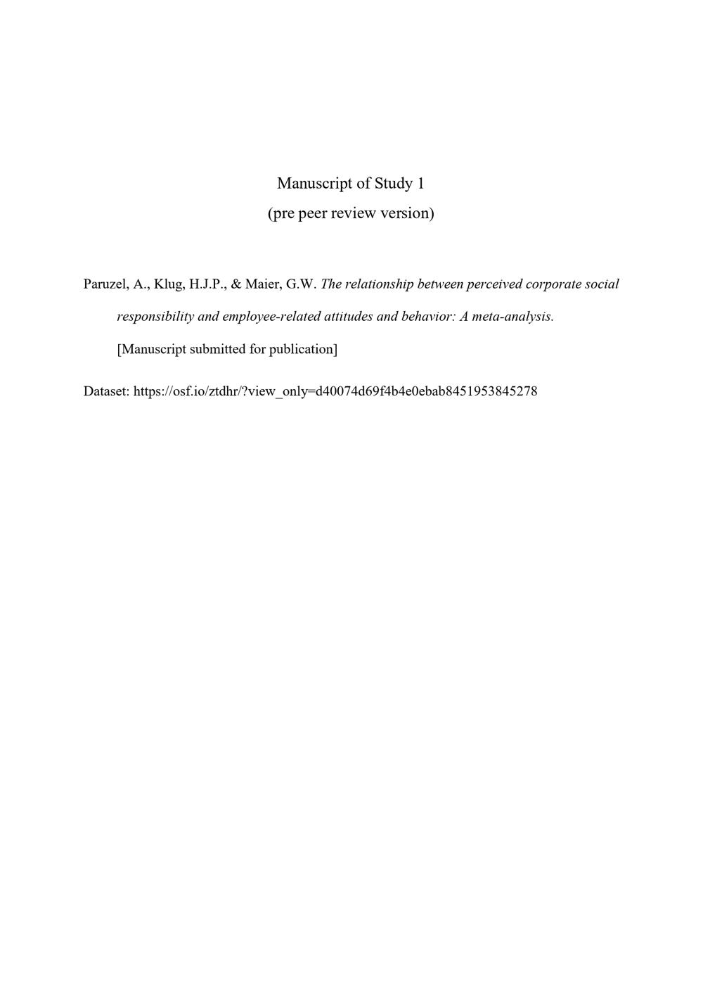 Why Corporate Social Responsibility Affects the Employee: Investigating Underlying Psychological Mechanisms