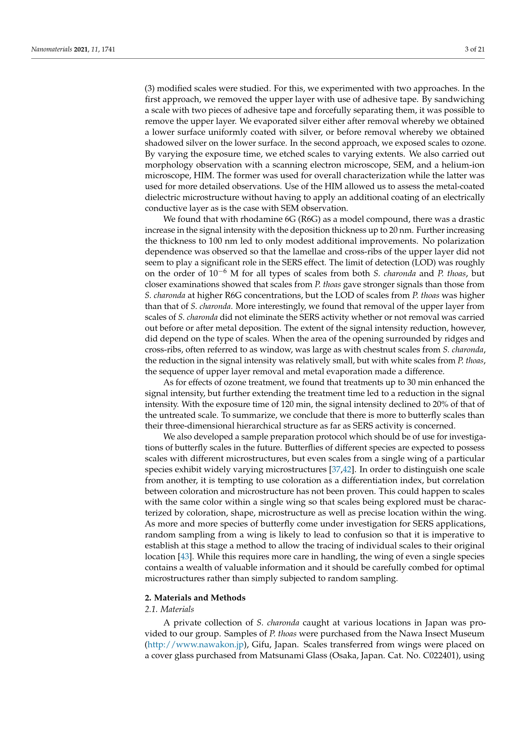 Surface-Enhanced Raman Spectroscopy for Molecule Characterization: HIM Investigation into Sources of SERS Activity of Silver-Coated Butterfly Scales