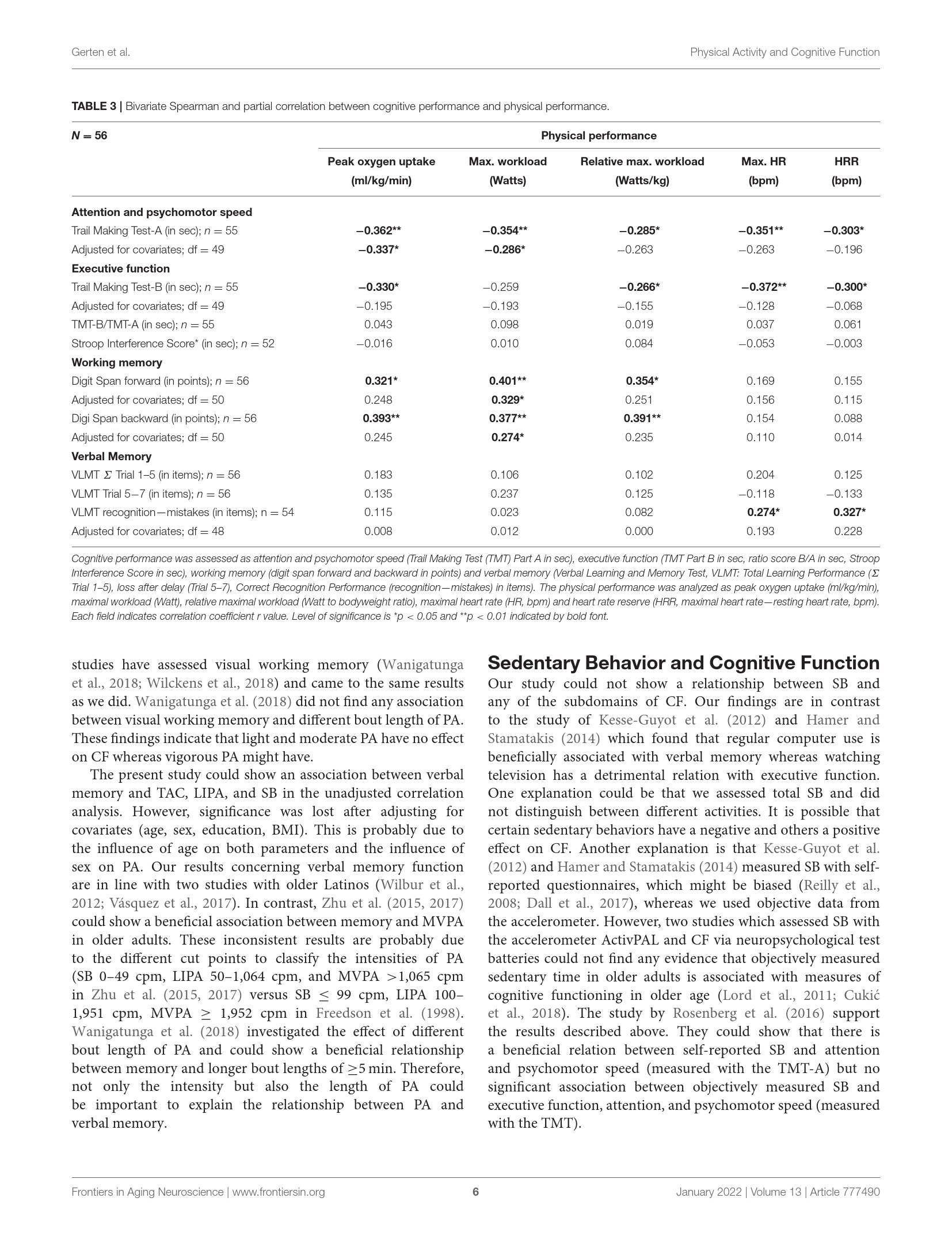 Sedentary Behavior and Cognitive Function