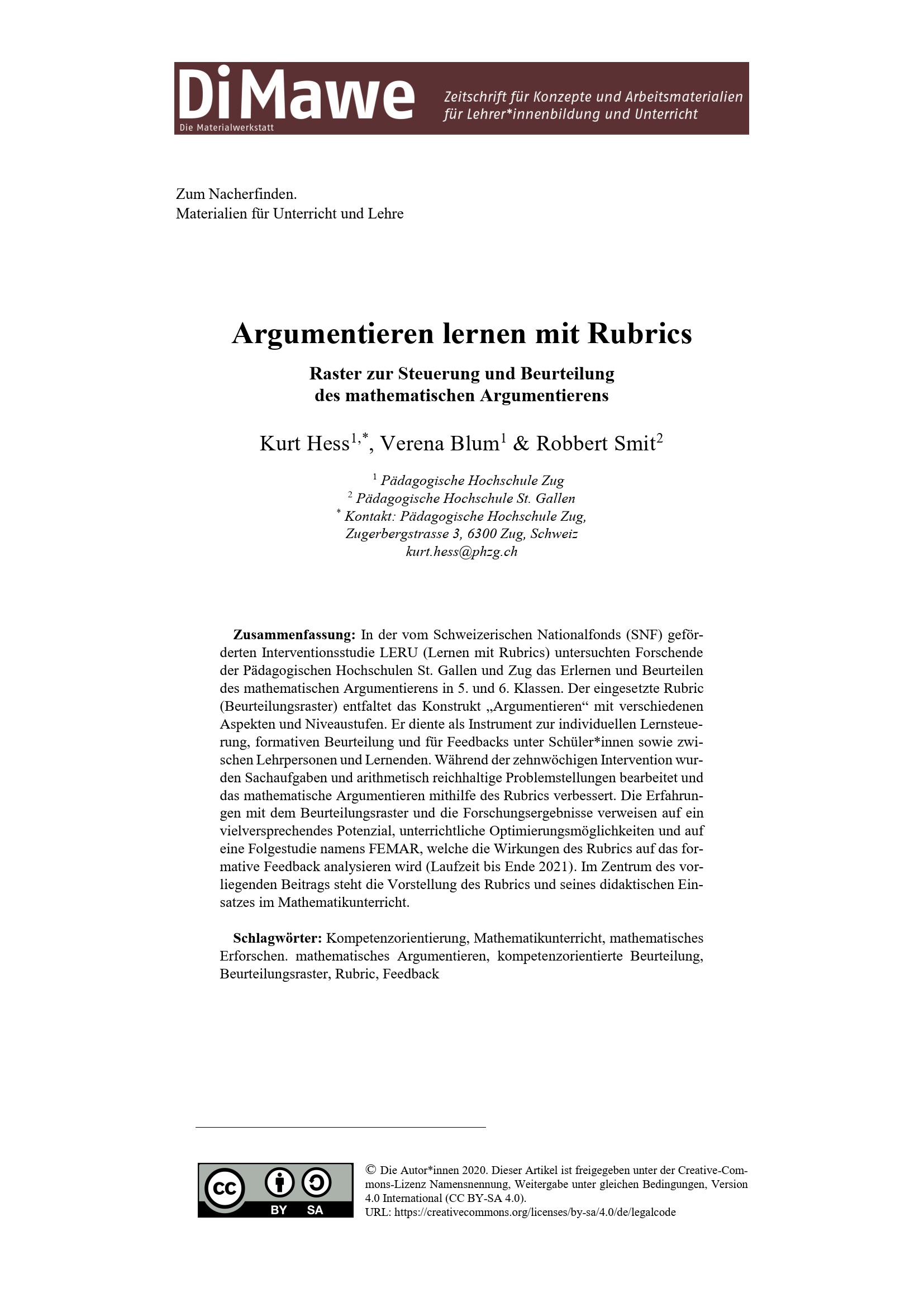 Argumentieren lernen mit Rubrics : Raster zur Steuerung und Beurteilung des mathematischen Argumentierens