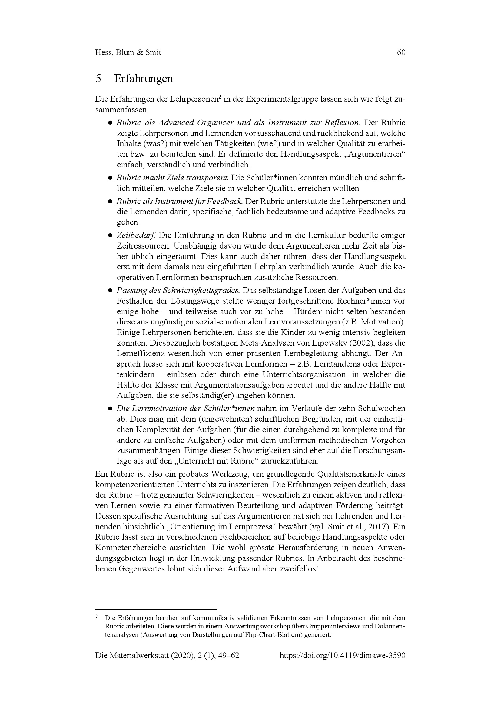 4.3 Potenzial von Argumentationsaufgaben und der Lernsteuerung mit Rubrics im kompetenzorientierten Unterricht