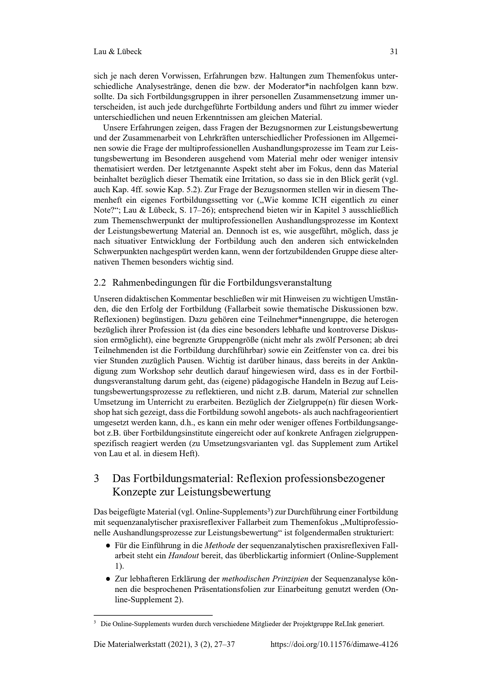 3 Das Fortbildungsmaterial: Reflexion professionsbezogener Konzepte zur Leistungsbewertung