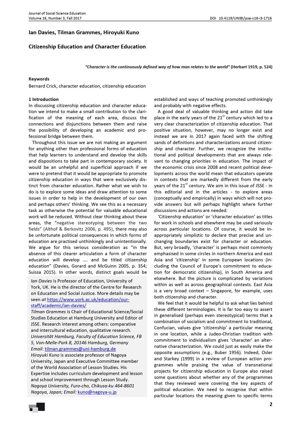 Citizenship Education and Character Education