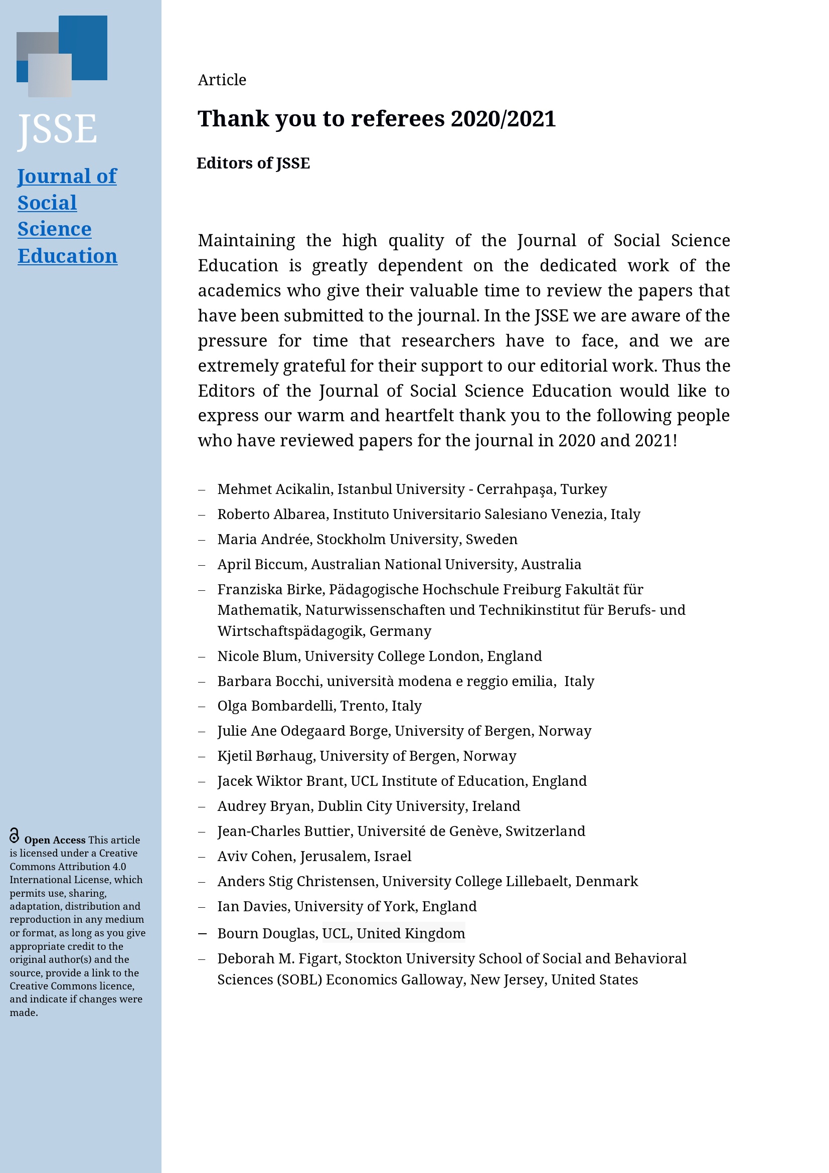 Thanks to Referees 2020/2021