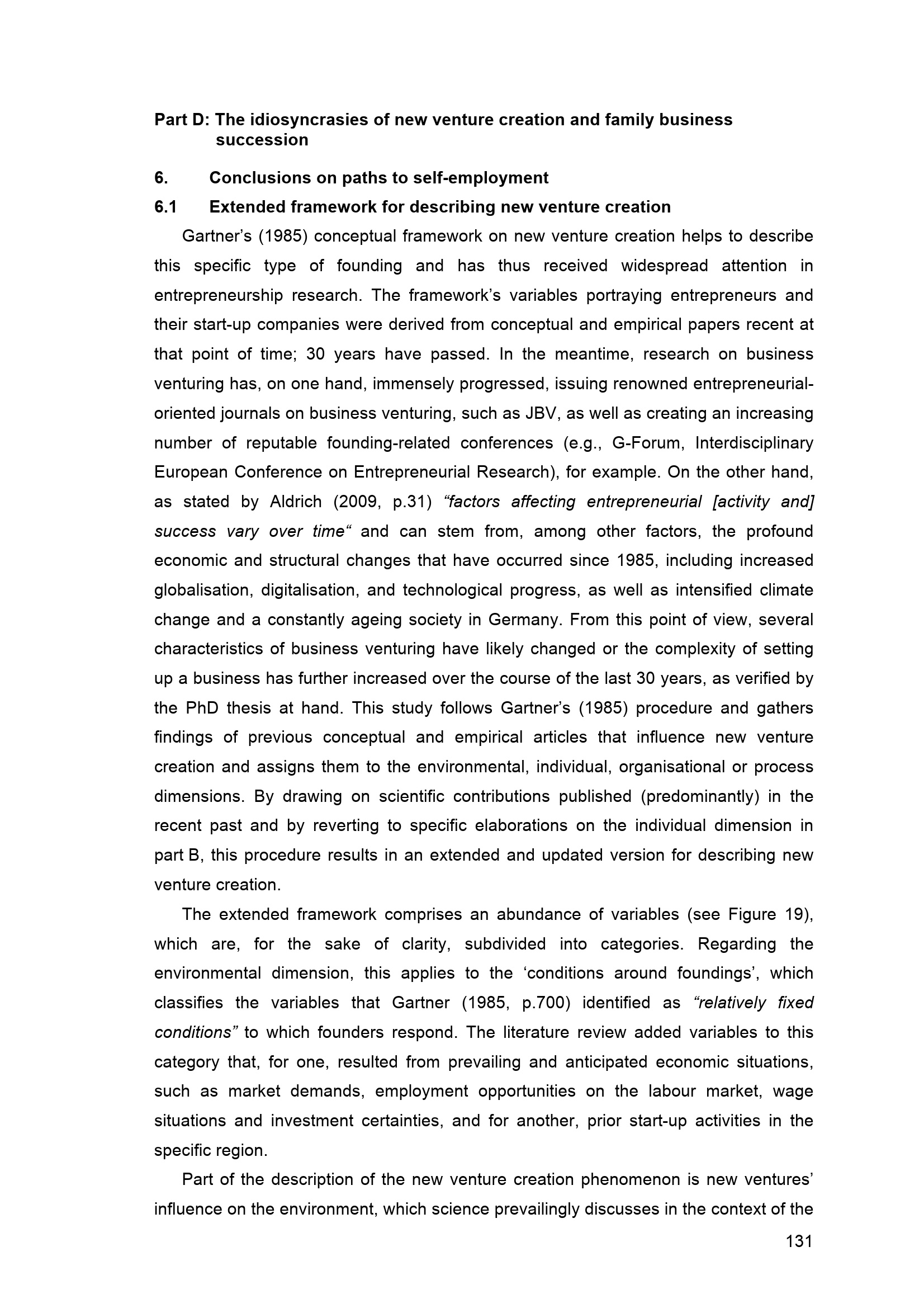 6.1 Extended framework for describing new venture creation