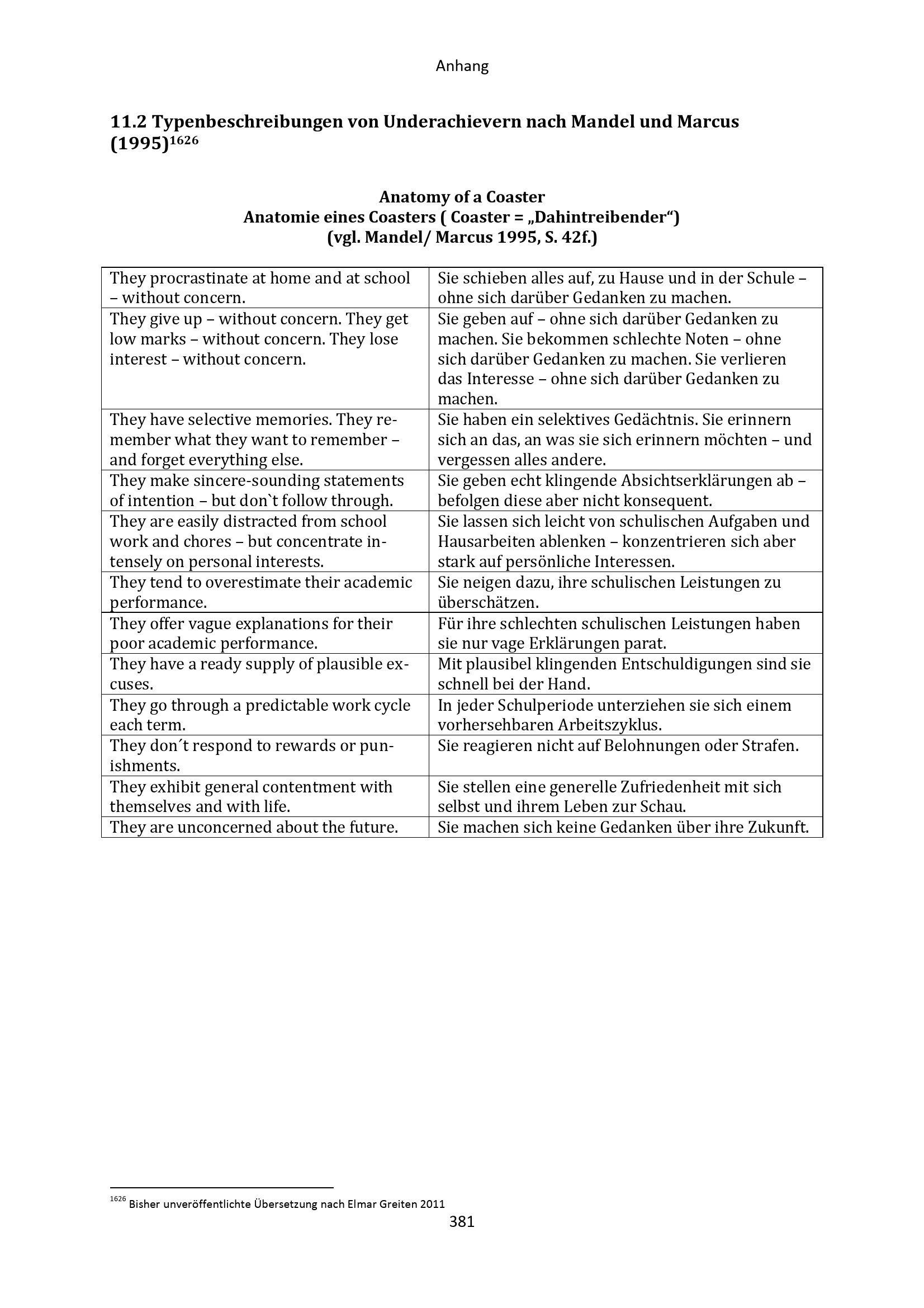 11.2 Typenbeschreibungen von Underachievern nach Mandel und Marcus (1995)