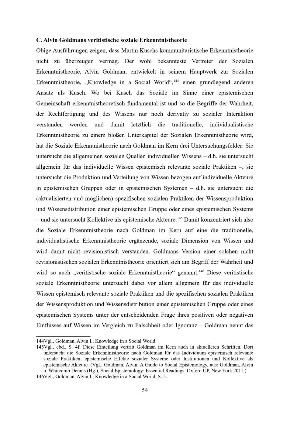 C. Alvin Goldmans veritistische soziale Erkenntnistheorie