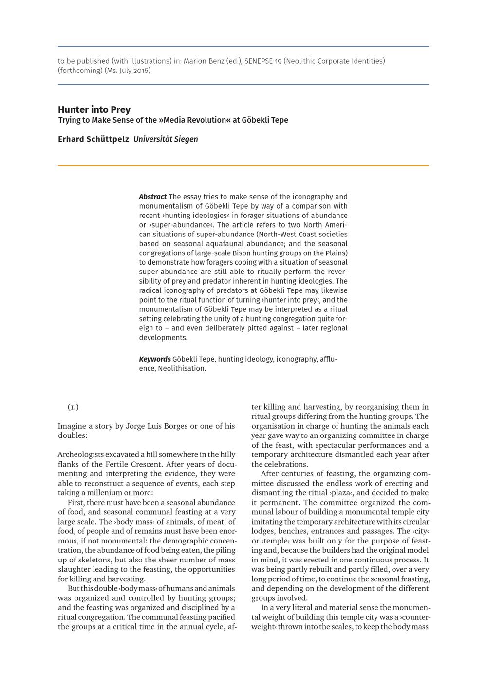 Hunter into prey : trying to make sense of the »Media Revolution« at Göbekli Tep[...]